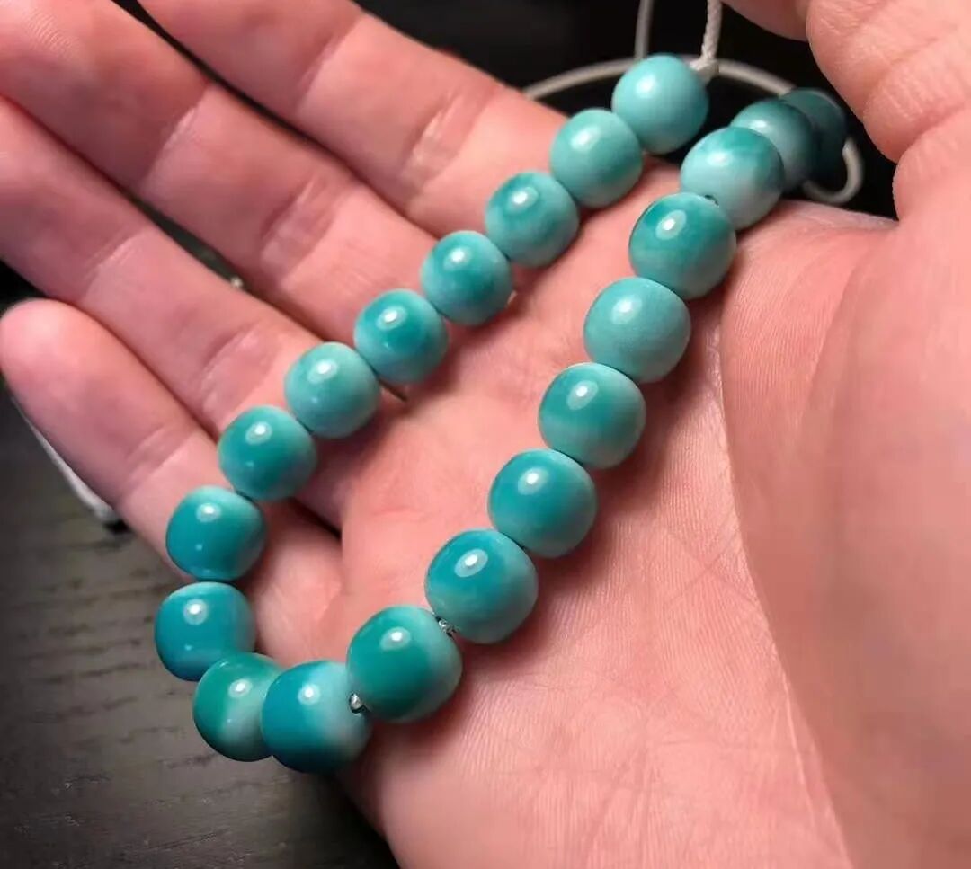 果冻料绿松石,即便随便盘盘,也能变色均匀、玉化透亮。而那些瓷度高,但料质不细腻的绿松石,即便悉心盘玩,依然还会变花、反白点。