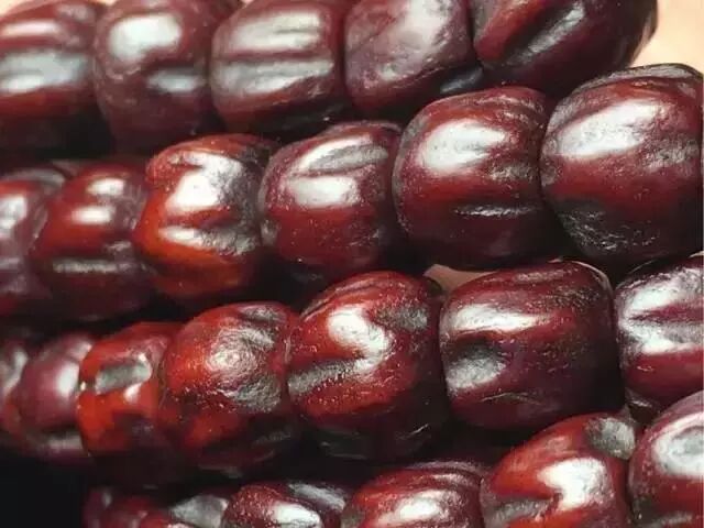 一般来说,百香籽的形制有两种:原桩和切片,这跟百香籽的打磨程度有关。打磨程度轻的,也就是将两端尖角微磨之后的桩型称为原桩,这种微磨既保证了整条百香籽串珠的美观。最大程度上保留了原籽的形状,也更利于盘玩。![]()