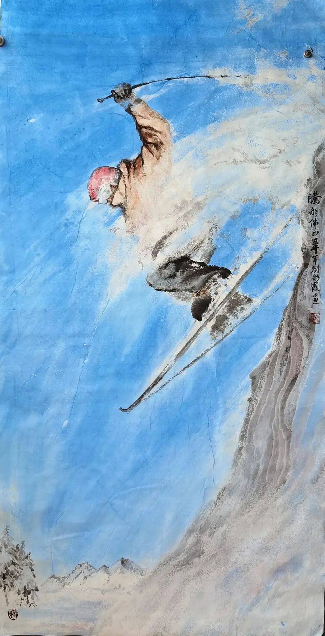 本次展览展出的作品游走在当代重彩和矾墨冰雪画表达的范畴,能让观众读到从重彩到矾墨冰雪语言探索变迁的轨迹。画家通过作品表达自身阅历下对冬奥精神的理解和对社会生活的感悟,展示了矾墨冰雪画研究的成果。刘彩霞从八十年代追随冰雪画创始人于志学先生至今,其在矾墨冰雪画的创作上历经了多年创作实践及教学过程,探索了冰雪与工笔的结合及矾墨冰雪的拓展研究,形成了矾墨新形式语境和新元素符号。