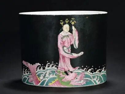 故三阳为东去春来,阴消阳长,有吉亨之象。明清瓷器上绘三只羊,题三阳开泰,绘九只羊,题九阳启泰(九阳也是《易经》上说的九个阳数),均为岁首称颂之辞。清代景德镇窑粉彩瓷器的装饰图案。流行于乾隆、嘉庆时期。器身满饰各色花朵,如百花堆聚。图案以牡丹为主题,周围绘菊花、茶花、牵牛花、莲花、玫瑰花、百合等。有黑地和白地两种,以黑地为贵。画面繁密细致,五彩缤纷。明清时期盛行的以寓意谐音的方式表示祝贺和象征吉祥的纹样。如:牡丹-富贵,桃子-寿,石榴-多子,松鹤-长寿,鸳鸯-成双,喜鹊-喜庆,鹿-禄,蝙蝠-福,鱼-富足有余,鹌鹑-平安,戟、磬、瓶-吉庆平安,喜鹊踏梅枝-喜上眉梢;梅花、竹子、喜鹊-梅竹双喜,梅花、竹子、绶带鸟-夫妻“齐眉祝寿”,牡丹、海棠-富贵满堂,牡丹、月季-富贵长春,牡丹、瓶-富贵平安,牡丹、玉兰-玉堂富贵,牡丹白头翁-富贵白头,毛笔、银锭、如意-必定如意,等等。松、竹、梅称“岁寒三友”,是中国画的常见题材。宋人苏东坡诗“风泉两部乐,松竹三益友。”“宁可食无肉,不可居无竹。”又如文与可画梅、竹、石题:“梅寒而秀,竹瘦而寿,石丑而文,是三益友。”竹、松经冬不凋,梅耐寒开花,故有岁寒三友之称。宋以后常作为瓷器的装饰题材。亦有用石块、柏树代替或松树而组成岁寒三友的。三国曹魏晚期,政治昏暗,一些正义之士不愿同流合污,纷纷退出官场,过着纵情山水,放浪不羁的生活。当时,文人名士嵇康、阮籍、山涛、向秀、阮咸、王戎、刘伶七人、相与友善,隐身遁世,常闲聚于竹林,或醉饮奏琴,或赋诗咛咏,以发泄忿懑,号为竹林七贤。五代时,长沙窑瓷器绘有此图。清代景德镇窑仍有这种装饰有产品。瓷器纹饰。流行于清代。竹爆平安是古代时在节日里或喜庆有日子里,用火烧竹,发出爆裂之声,以驱除山鬼,保佑平安。瓷器上的竹爆平安图,系绘爆竹和瓶来表示此意。如意,原为僧人用具,讲经时手执之物。后亦作为民间玩赏的吉祥物,形状如灵芝或云形。瓷器上绘两只柿子和如意,称“事事如意”,绘松柏、柿子、灵芝,表示“百事如意”、“万事如意”、“吉祥如意”、“和合如意”、“新韶如意”等图案。常见于明清瓷器。画面绘灵芝和山石,代表“寿山”,绘蝙蝠和海水,代表“福海”。是以象征和谐音来表意的风俗画。![]()