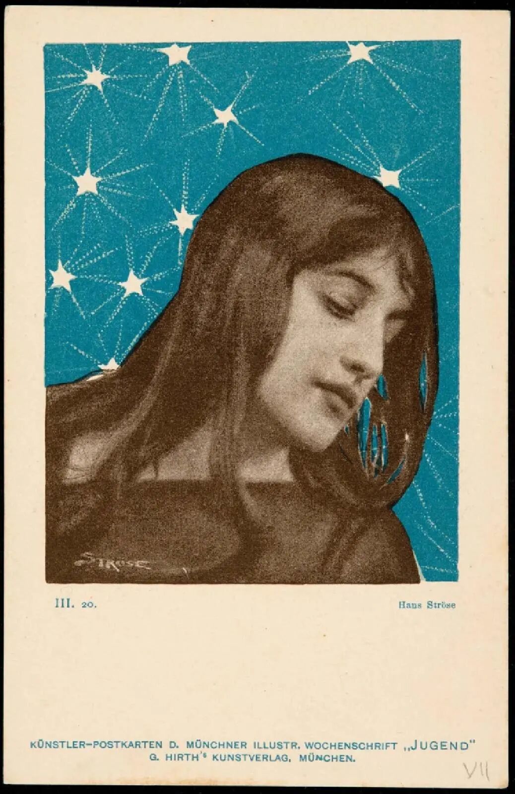 《夜晚的女人》,汉斯·斯特罗塞,德国,彩色平版印刷于卡纸上