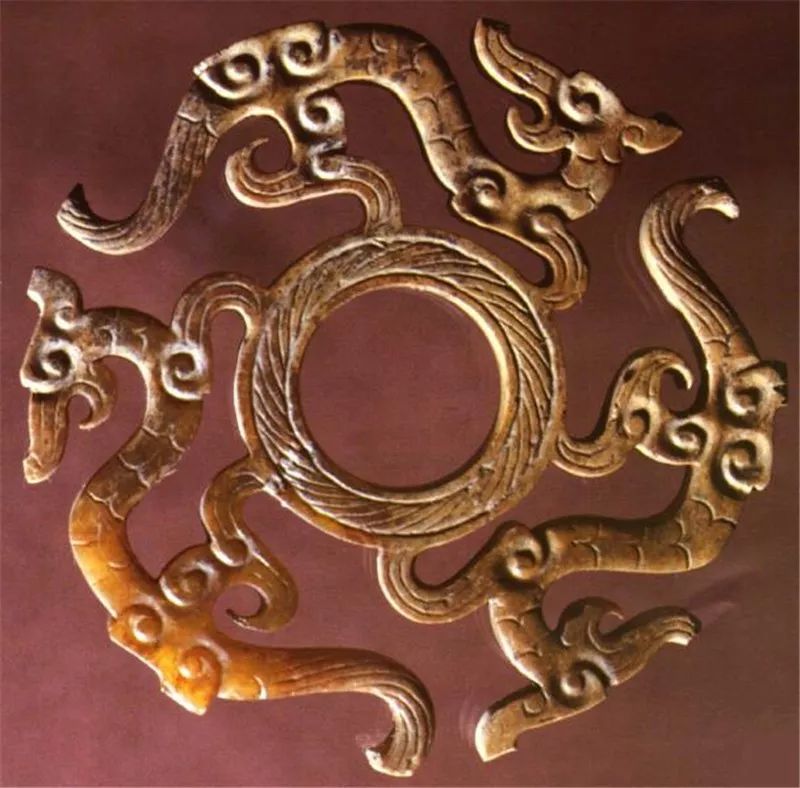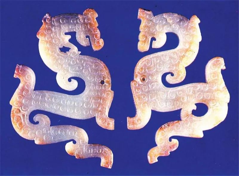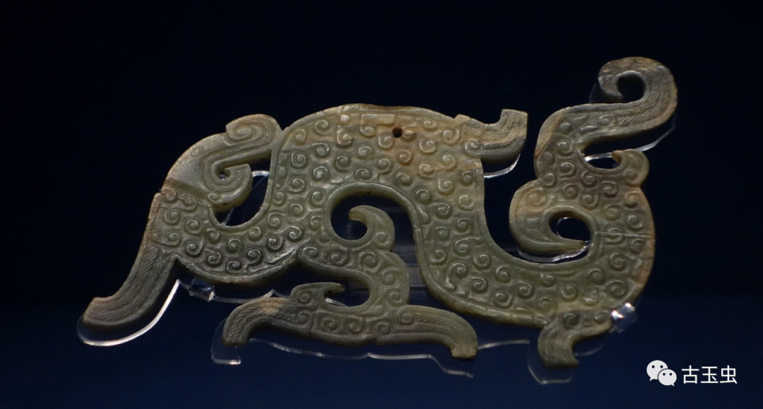出土的楚国盘折状玉龙,其身、首、尾、足常相连成一器,并多呈扁平狭长状,不如其他地区玉龙伸展,这也是分辨楚国玉龙的原则之一。