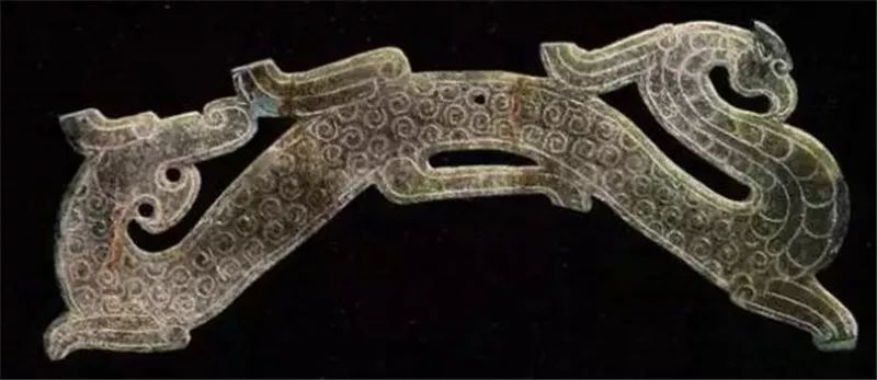 玉龙有舌,在战国时期极为少见,曾侯乙墓的双龙佩,所透雕对称的两条卷龙,则作张口吐舌状,且长舌阴刻成蛇形。