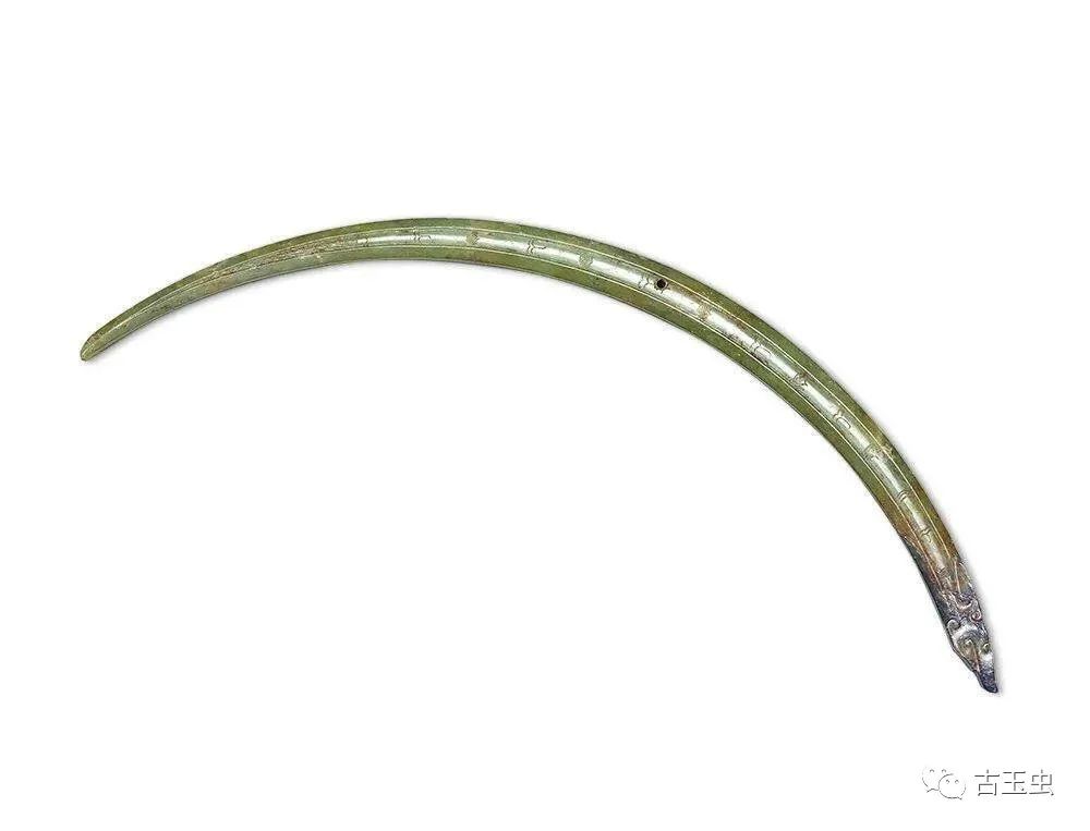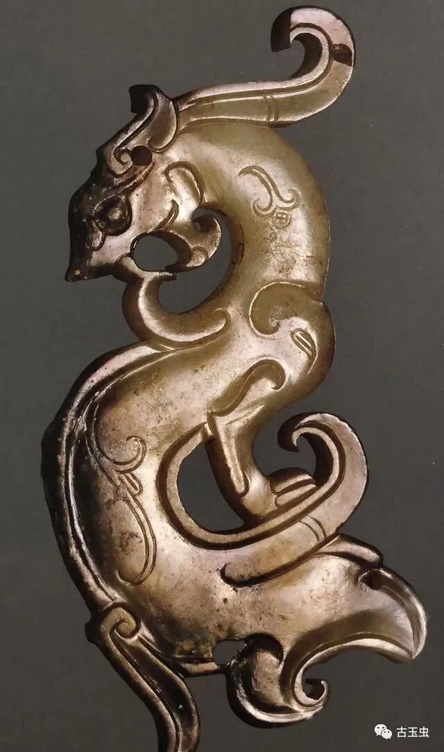 战国早期玉龙角多不明显,至战国晚期则出现尖翘卷角,形制极为夸张华丽,并具有飞扬的姿态,对后代龙角造型影响很大。大致可分为: