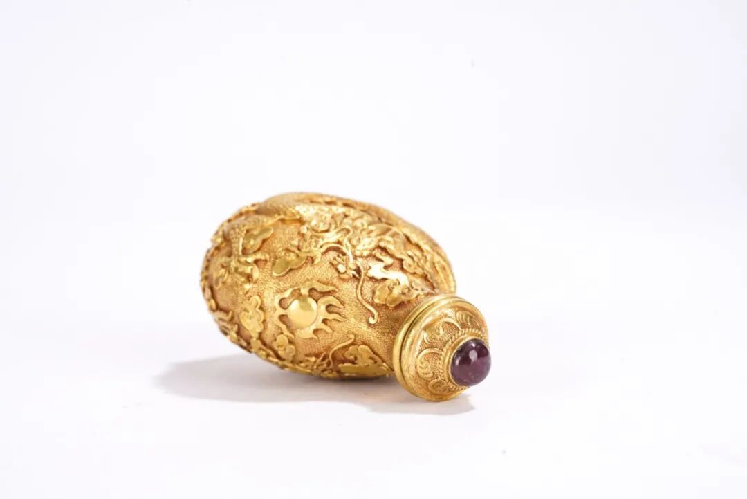 Lot 1017 十八世纪 清乾隆 中国 皇家纯金龙纹浮雕鼻烟壶