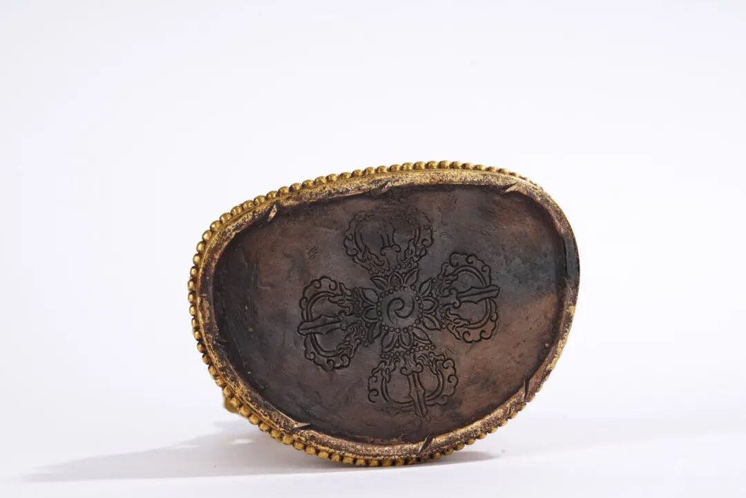 尺寸:H 27.0 cm,L 16.0 cm,W 39.0 cm来源:北加州核桃溪市莫尼森家族遗产。莫尼森夫妇为虔诚的藏传佛教徒, 自1977年起多次前往尼泊尔,印度等地交流,积累了可观的佛教艺术品收藏。莫尼森夫妇在2019年前后相继过世,藏品由其家族后人保存。Lot 1418 十七世纪/十八世纪 稀有鎏金铜密宗宫殿式坛城