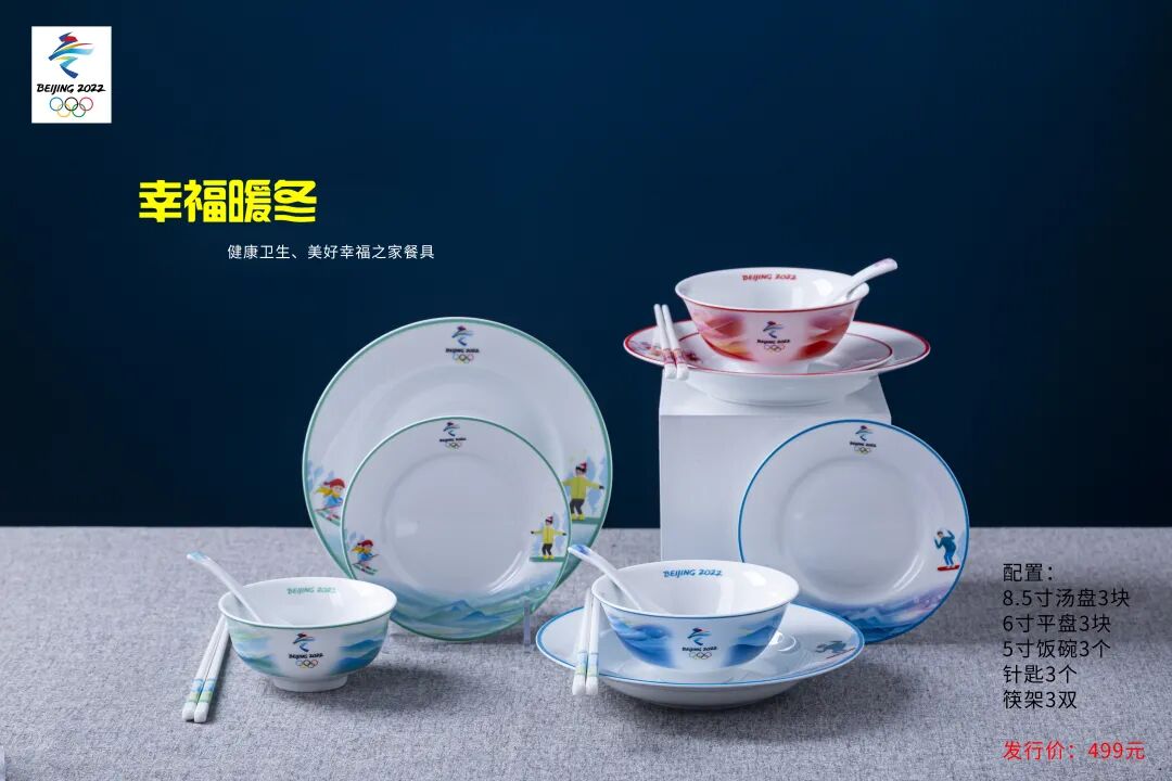 《幸福暖冬》餐具为北京2022年冬奥会特许商品,选用高温白瓷制作,以冬奥会核心图形和冬奥冰雪运动项目卡通图案为装饰,展现了全国人民喜迎冬奥、支持冬奥的浓厚氛围,迎合现代新生活分器用餐的趋势,倡导文化卫生、绿色健康的生活方式。