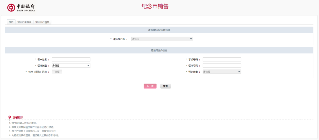 注意!虎年纪念币预约每人只有一次预约机会,不能重复预约。重复预约会无法通过核实,影响最终兑换。