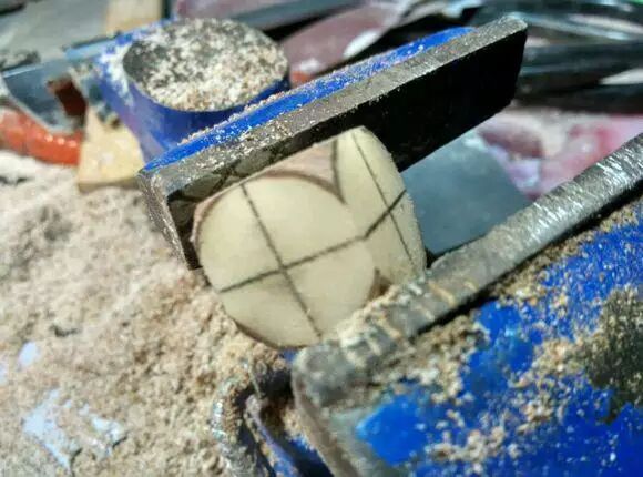 第一步,把菩提根夹在台钳上,找到芽眼,挫出基准面。再以基准面为基础转90度或180度,挫剩余的五个面。