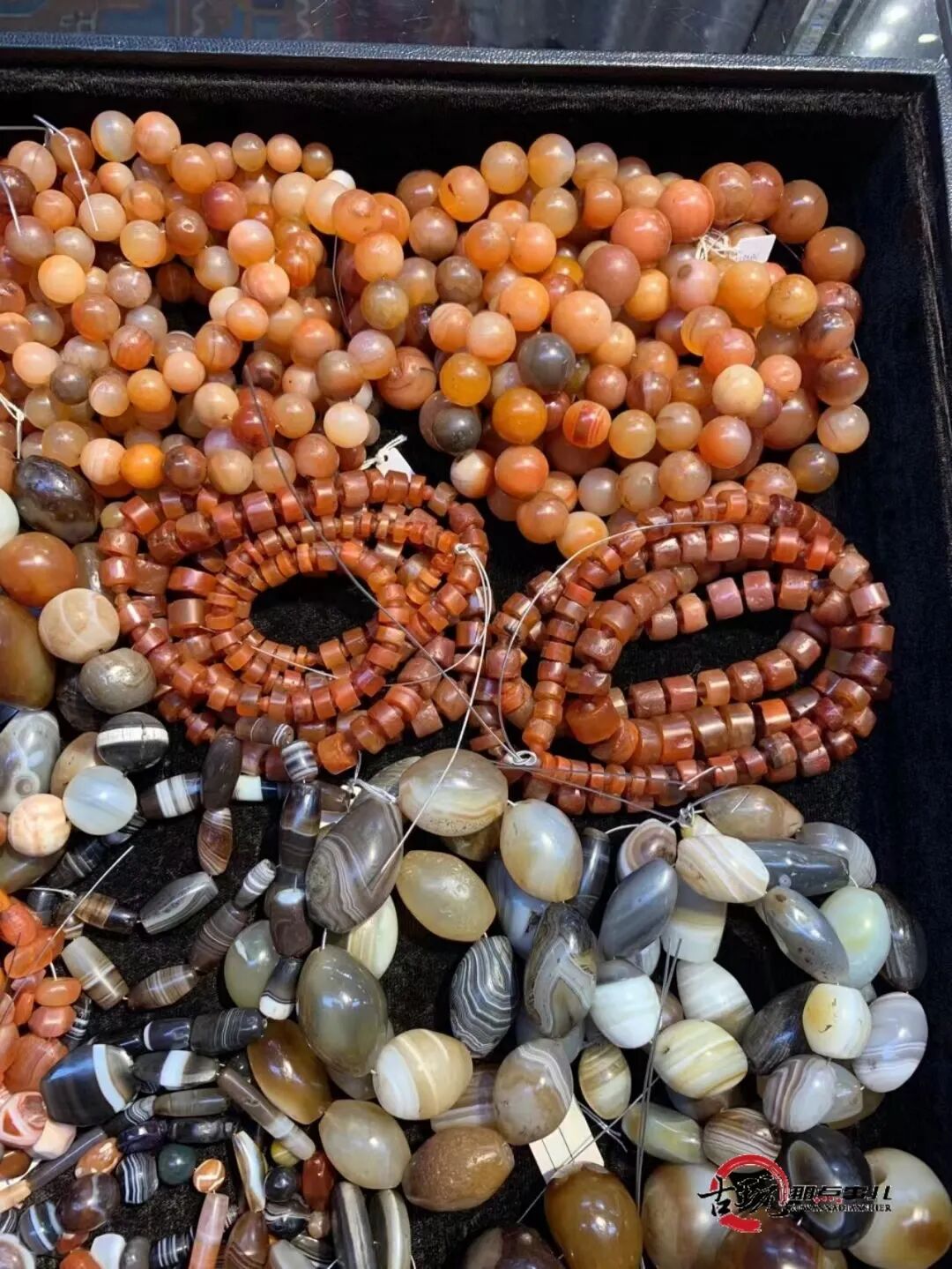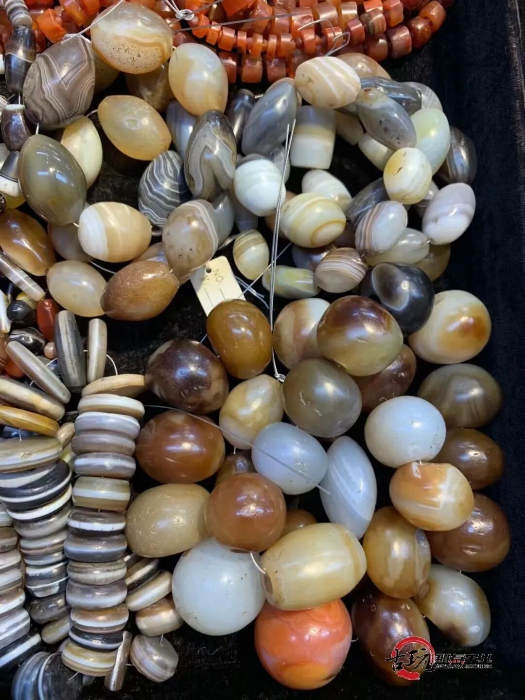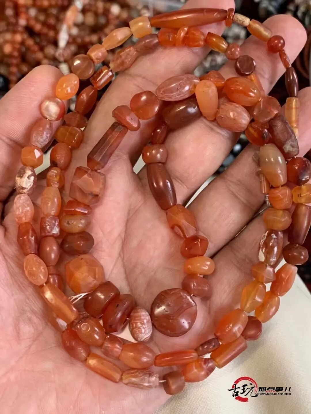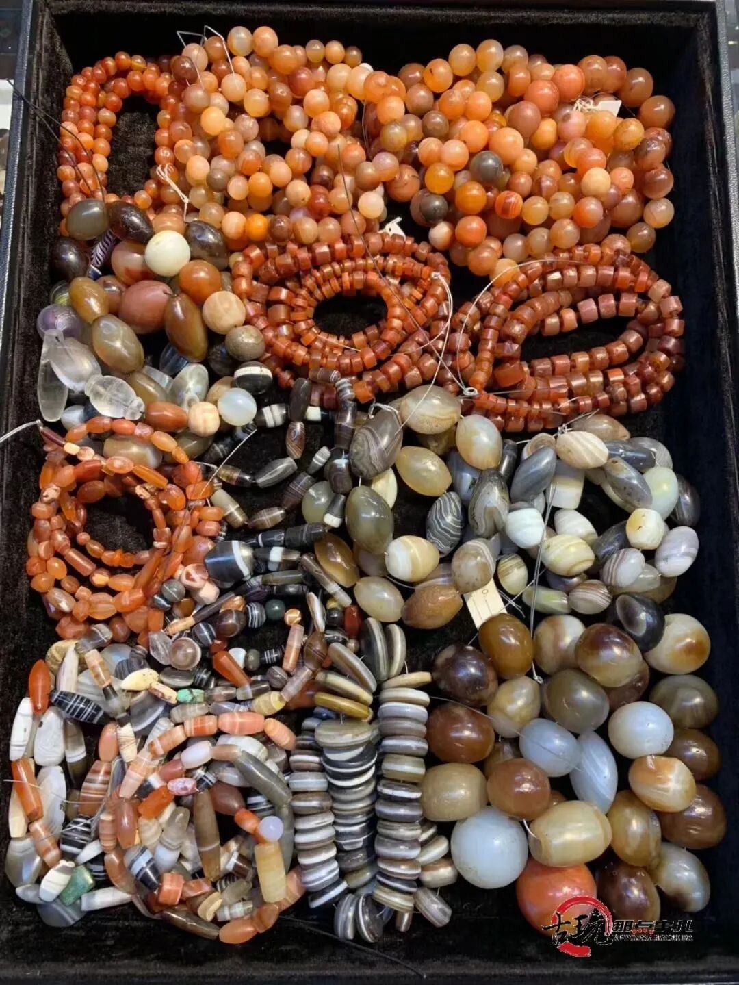 唐球、唐八棱珠所选玛瑙主要以棕红色为主,颜色围绕这个基调,略有深浅差别,非常有特点。目前,在市场上能见到的仿品唐球、唐八棱多以进口玛瑙材料制作,与古珠有十分明显的区别。