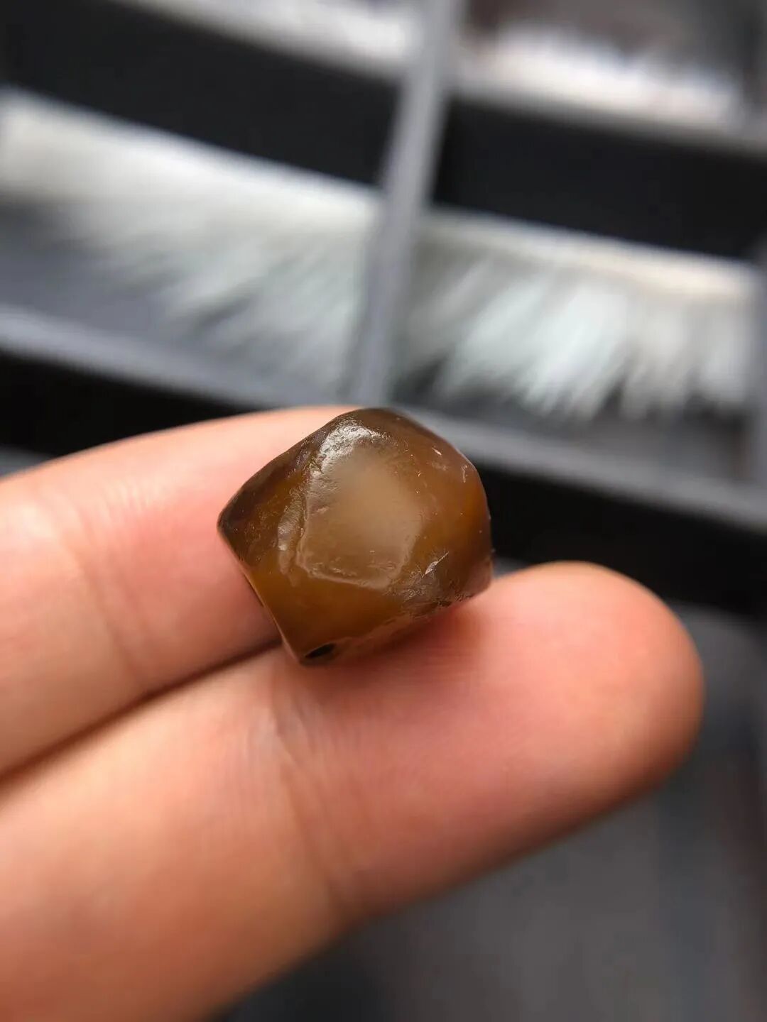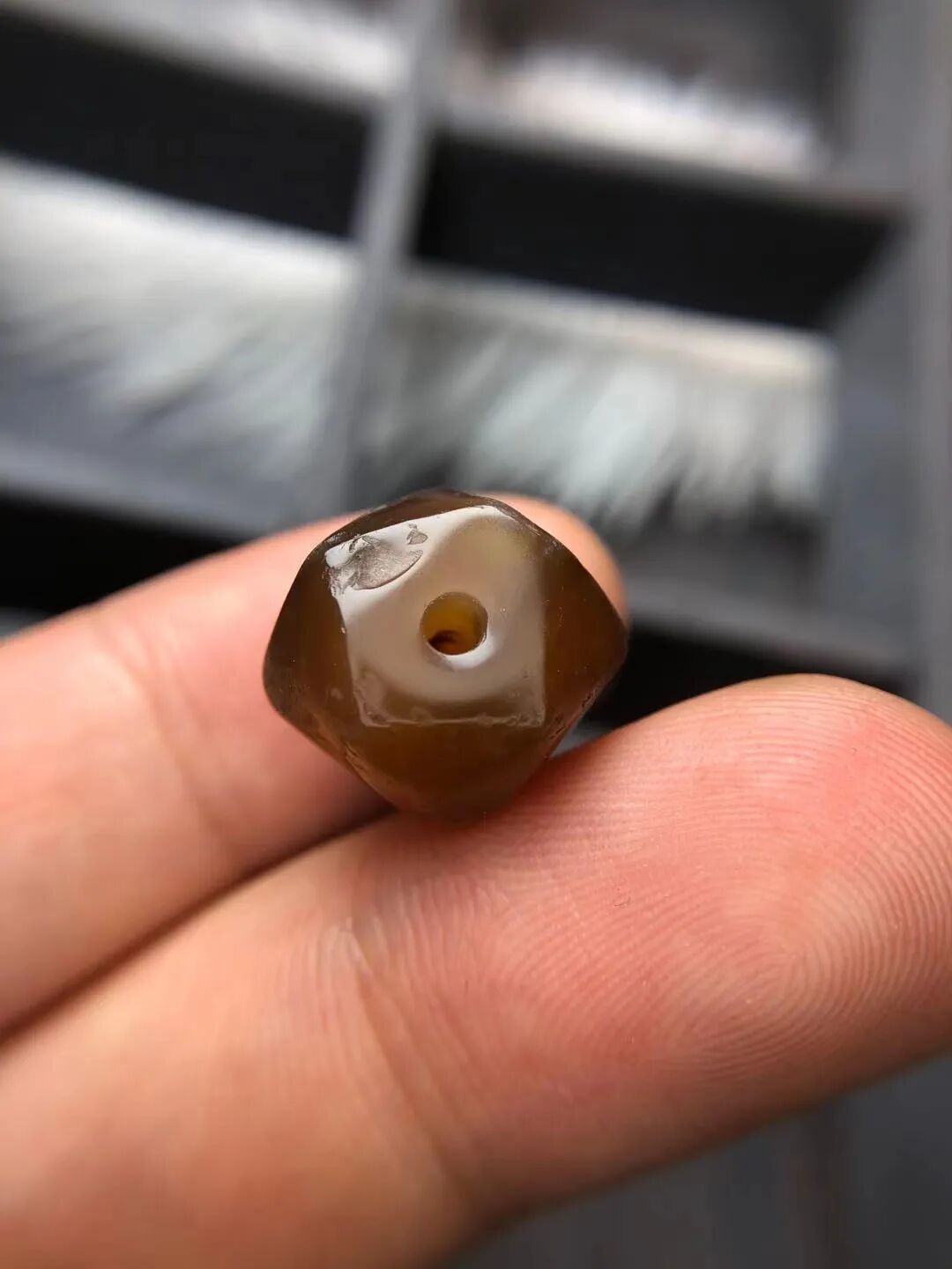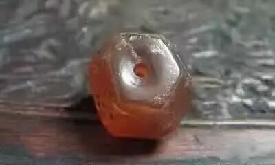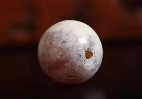 还有一种非常特别的唐球、唐八棱珠,它们的表皮会呈现出灰色还有蓝色,也通常称之为灰皮唐球(蓝皮唐球)。灰皮、蓝皮的现象非常罕见,仅仅会出现在极少数的珠子上面。下图为千年灰皮唐球: