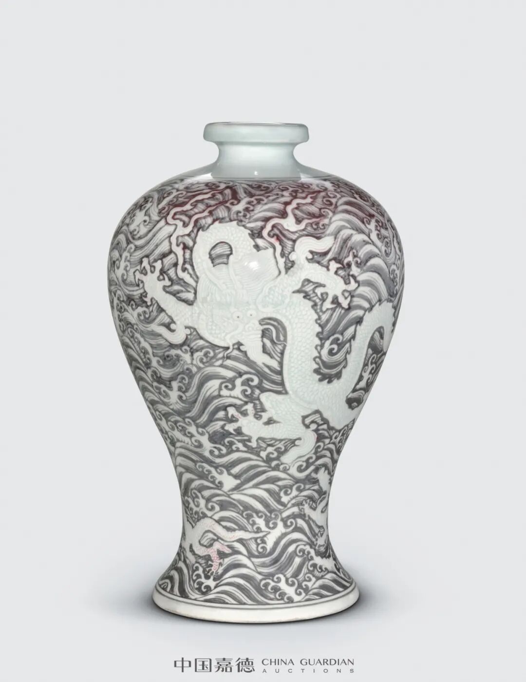 明永乐 釉里红海水锥拱苍龙教子图大梅瓶