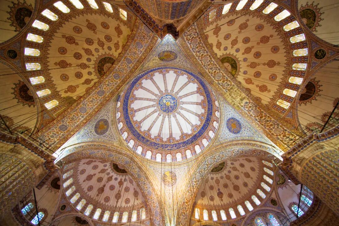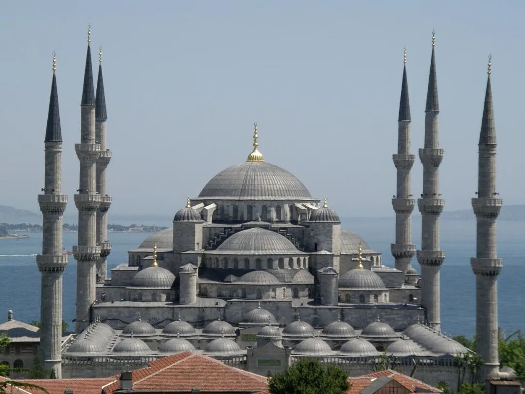 虚极子按:蔚蓝的马尔马拉海,真主蔚蓝的居所,海天一色,惊鸿一瞥,谁能抗拒这样的灵魂升华呢?伊斯坦布尔的花园广场上矗立着两座清真寺,一座是被改造后的圣索菲亚,另一座是以圣索菲亚为蓝本的苏丹艾哈迈德一世清真寺。由于这座清真寺室内贴满了手绘蓝花琉璃壁砖,因而俗称“蓝色清真寺”。![]()