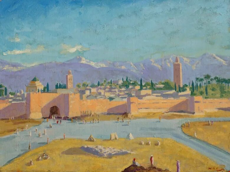 丘吉尔于1943年1月卡萨布兰卡会议结束后完成这幅风景画。他邀请罗斯福在摩洛哥多留一天,一同驱车150英里前往马拉喀什,坚持要让罗斯福欣赏阿特拉斯山脉的日落美景。