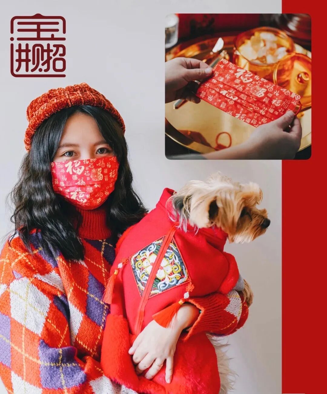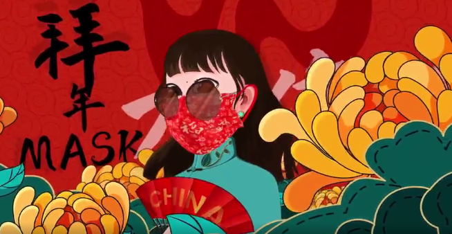 过年期间即使佩戴口罩也可以将过年的喜庆感展现出来。