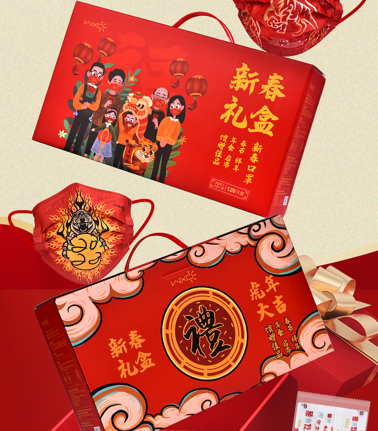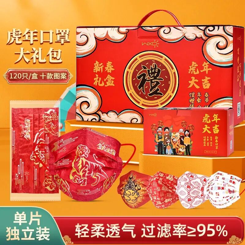 这套口罩是新年礼盒装,节日送礼,企业年会伴手礼,送朋友送亲戚都是一个好彩头!