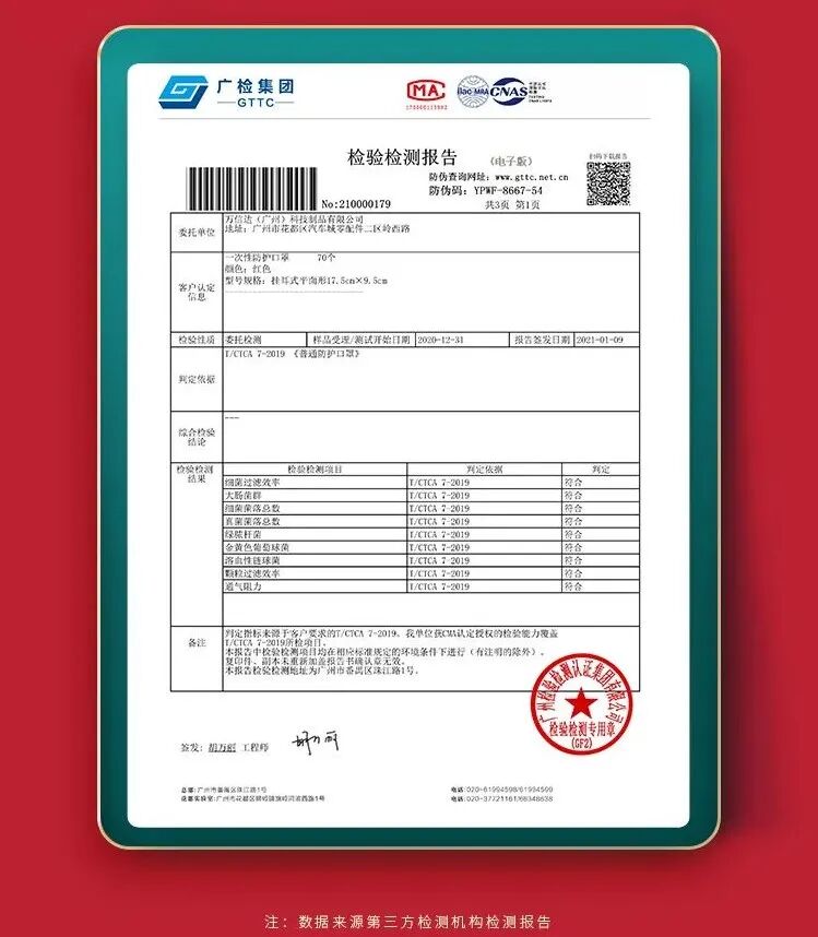 每个口罩的质量经过了严格的质检,让佩戴者安心用: