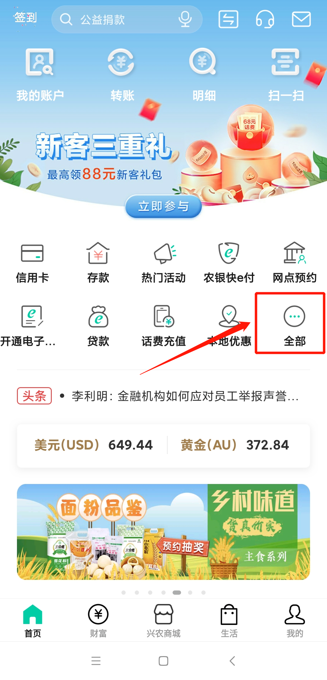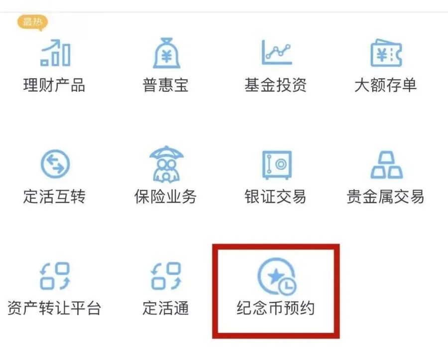 第二步:点击首页的“更多”→在“投资理财”一栏,选择“纪念币预约”。