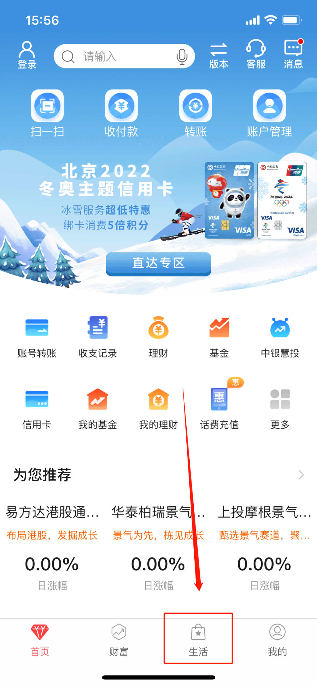 2.下载完成后,打开APP,点击页面下方的菜单栏里的“生活”→再点击上方的“纪念币预约”。