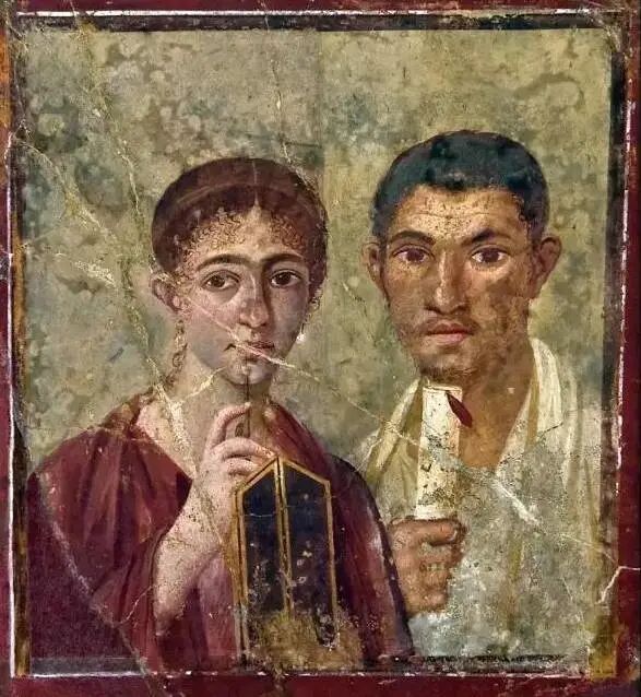 丈夫手握卷轴,妻子手持用于书写的蜡板