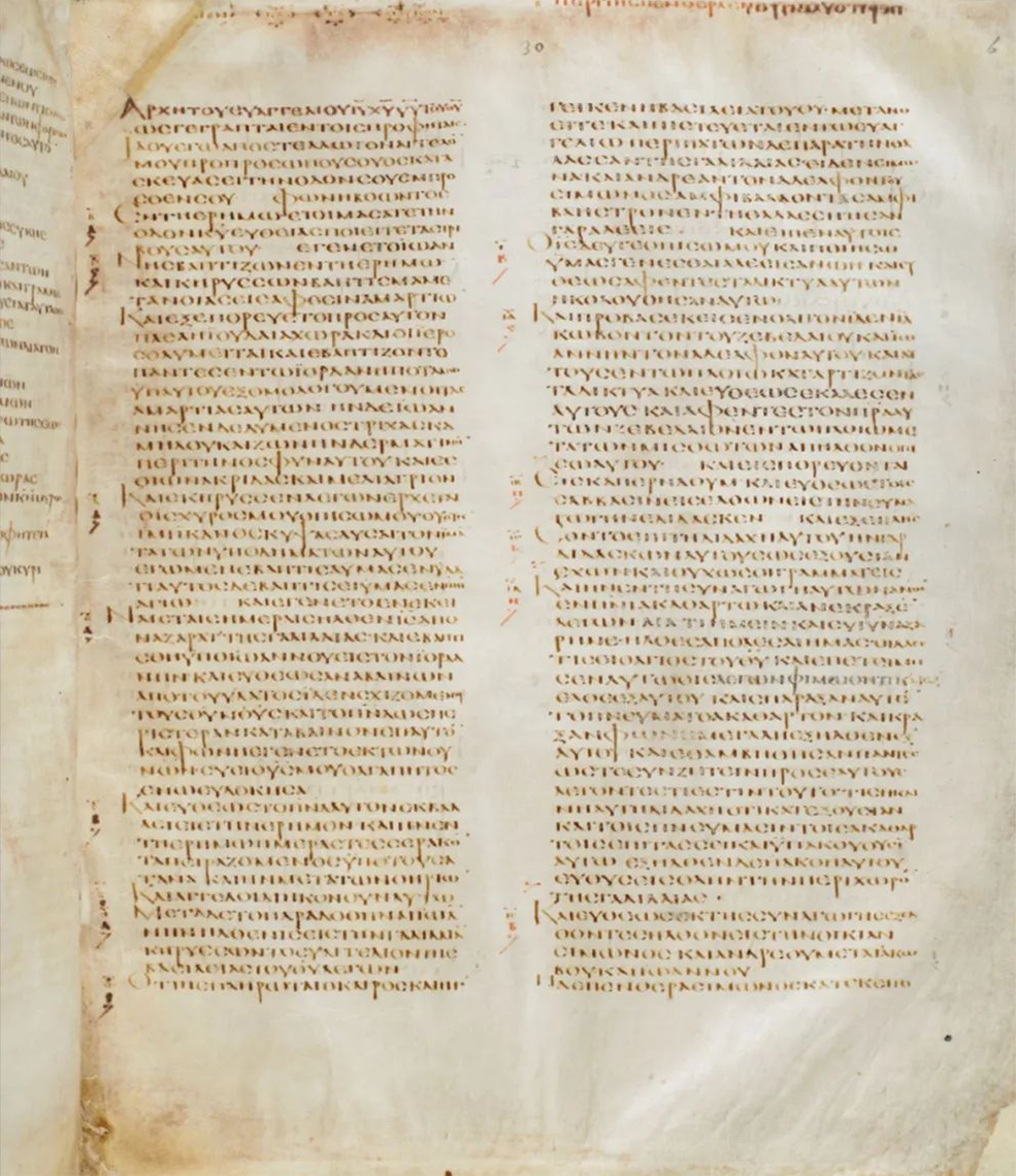 代表公元4世纪册子本制作的顶峰,次页抄录《约翰福音》
