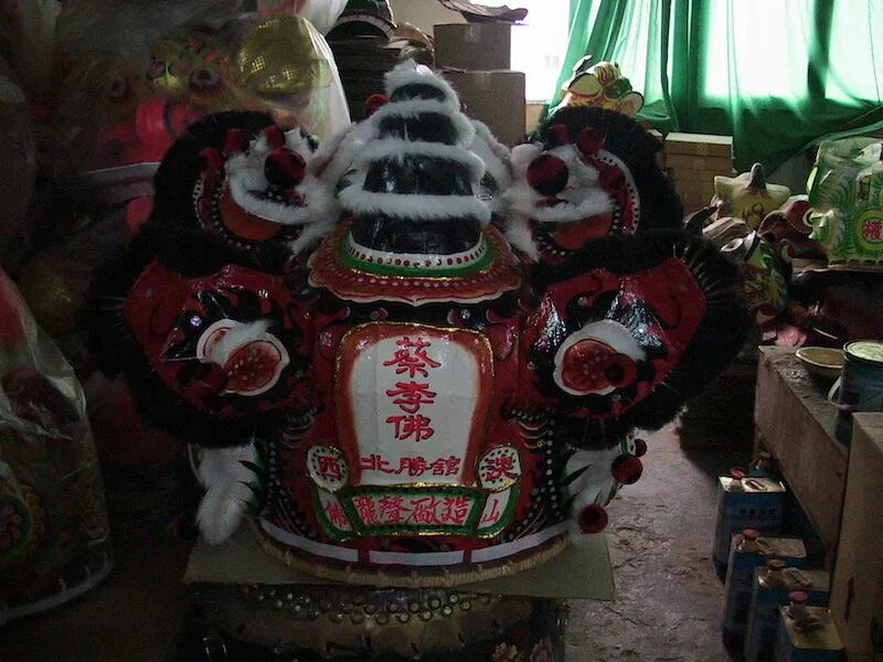 ▲在后脑部位写有流派和团体名称的传统狮头 彭伟文摄