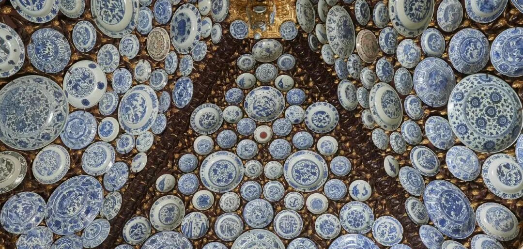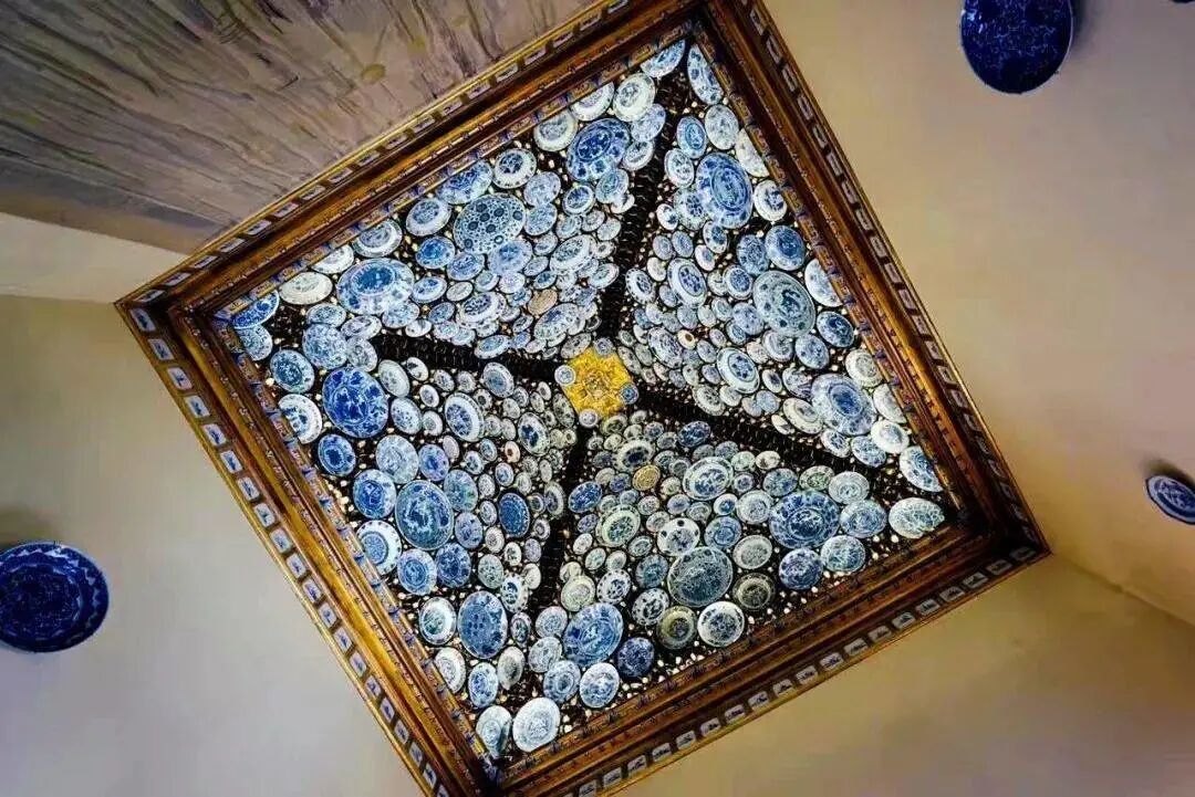而如同桑托斯宫这般瓷器装饰的屋顶依然是少见的,通常在这些瓷器宫室内中,大量的瓷器被镶嵌在墙面上,并且从地板一直到天花板的檐壁都错落有致地排布着,甚至壁炉的火膛内都被满满当当塞满了瓷器,整体看来华丽壮观,是一种极致的装饰手段。