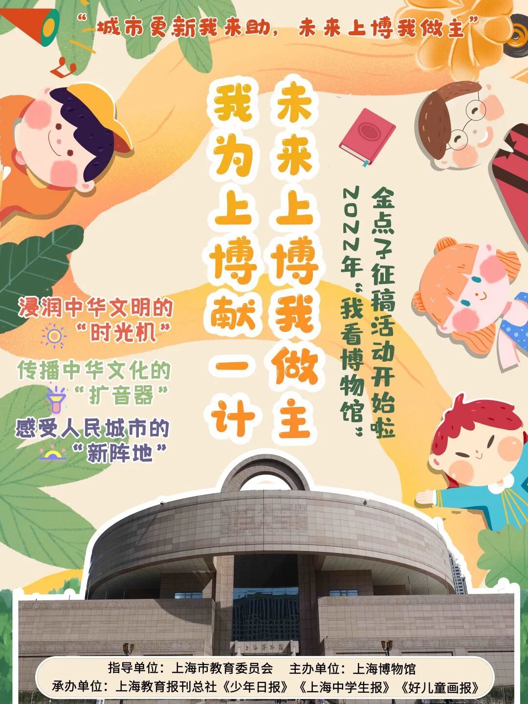为了呈现一座能够让文物活起来、扩大中华文化国际影响力的博物馆,一处建筑可阅读、让城市对儿童更友好的新地标,我们诚挚的邀请上博曾经和现在的小观众们参加本次征文活动,一起“看看”博物馆,“聊聊”馆舍更新金点子,品品城市发展“金果子”。