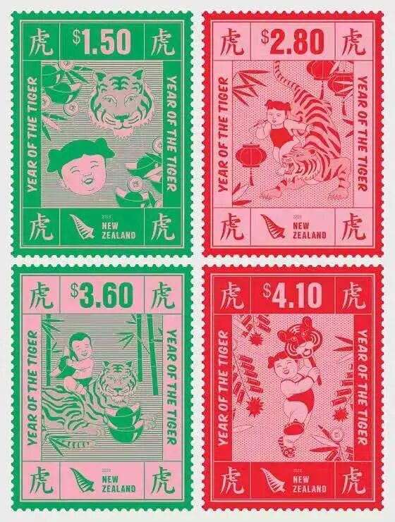 ▲新西兰邮政发行的2022年虎年生肖邮票