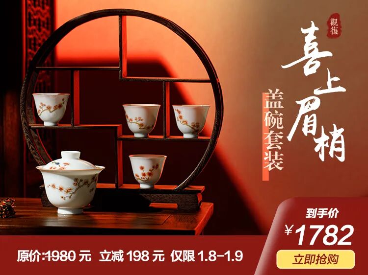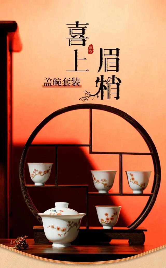 鹊噪梅梢,喜事将至。此【新彩喜上眉梢盖碗套装】1月8日-9日,限时优惠中~~