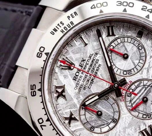 在功能化被个性化取代的市场需求下,不仅是豪车,很多腕表、高端珠宝品牌也开始运用陨石元素,太空概念,展开跨界合作,无一例外都是限量版,且受到热烈追捧。劳力士是最早以陨石做表盘的腕表品牌,它选用的同样也是Gibeon铁陨石,打磨切割得非常薄,一般可以达到0.3mm。
