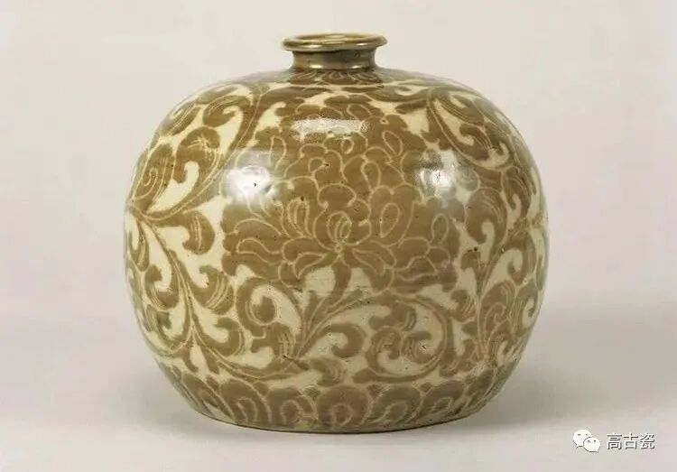 北宋 磁州窑白釉剔缠枝牡丹纹梅瓶
