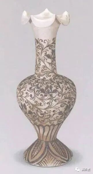 金白地黑花花口长颈瓶,1987年河北省磁县窑址出土,现藏磁县文物保管所