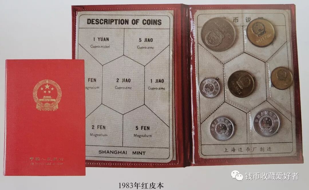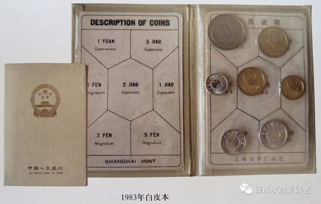(3)中国人民银行塑料皮本装精制币:分为白皮本和红皮本两种,封面印有“中国人民银行”字样,内有中文和英文说明书各一张,说明书印有“上海造币厂制造”字样,非常少见。