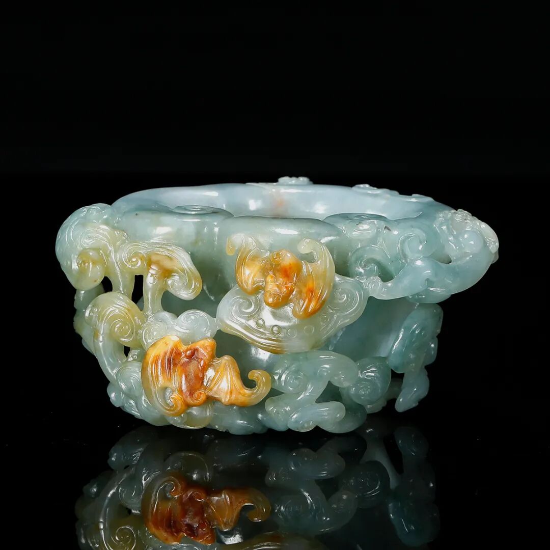 清乾隆·翡翠巧色镂雕福寿如意纹水洗