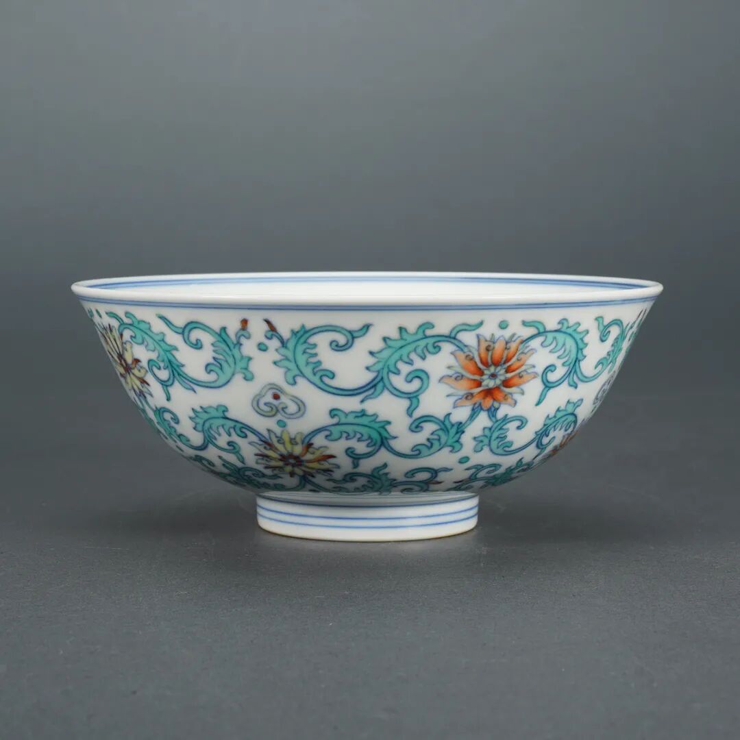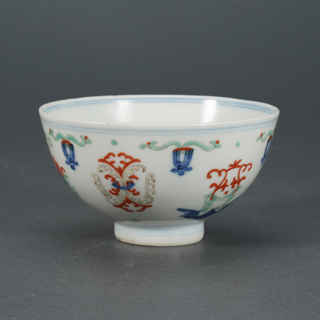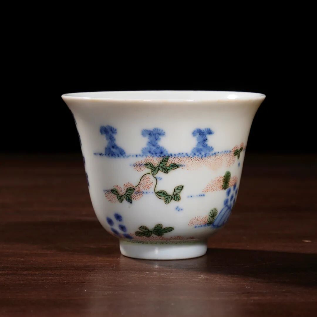 乾隆·青花五彩忍冬纹茶圆