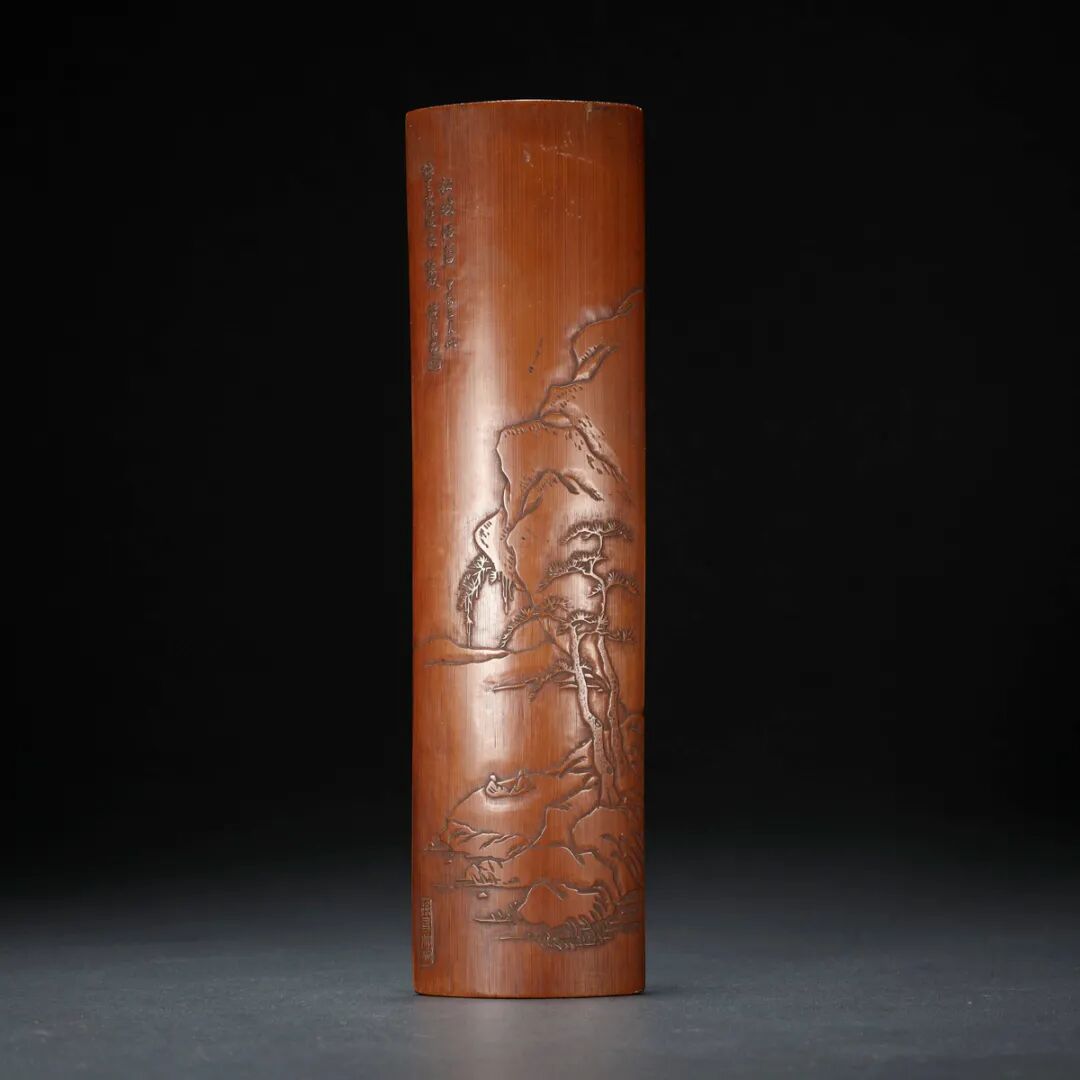 清·徐友竹刻山水纹竹臂搁