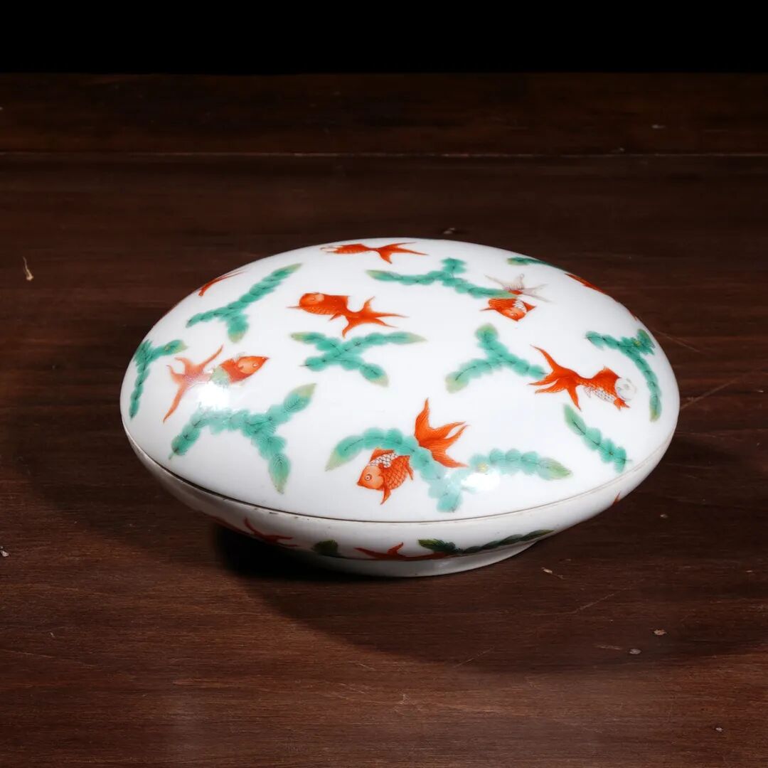 清道光·“睿邸退思堂”款粉彩鱼藻图捧盒