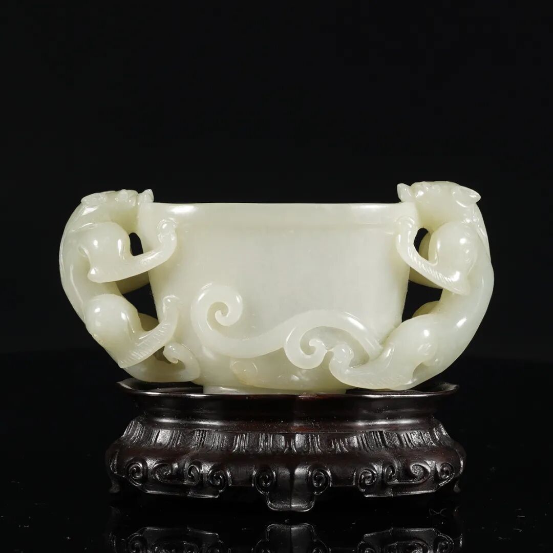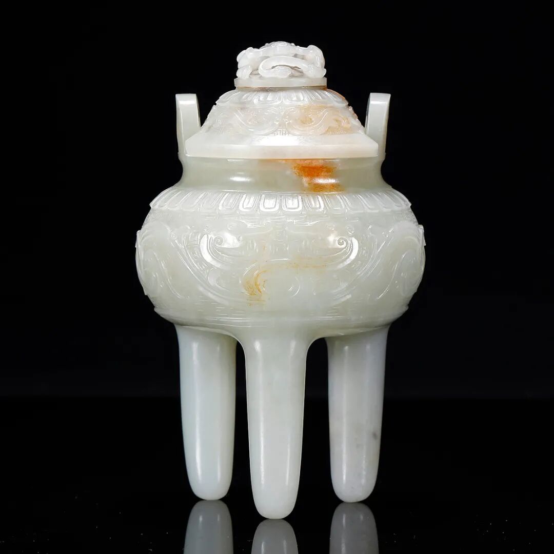 清乾隆·白玉雕龙纹三足冲耳炉