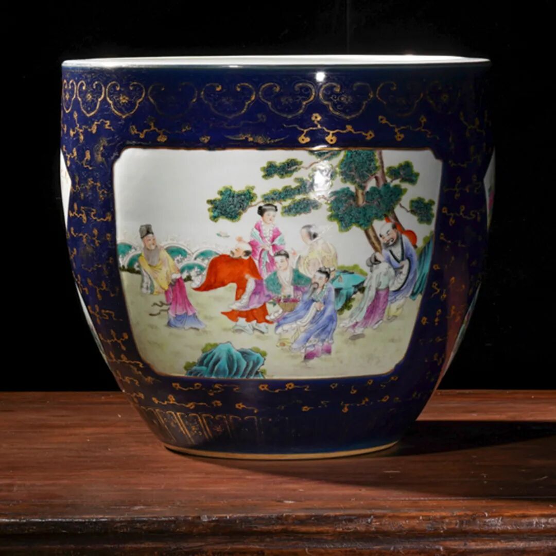开光粉彩群仙图卷缸