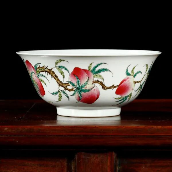 清光绪·粉彩九桃图五蝠捧寿宫盌