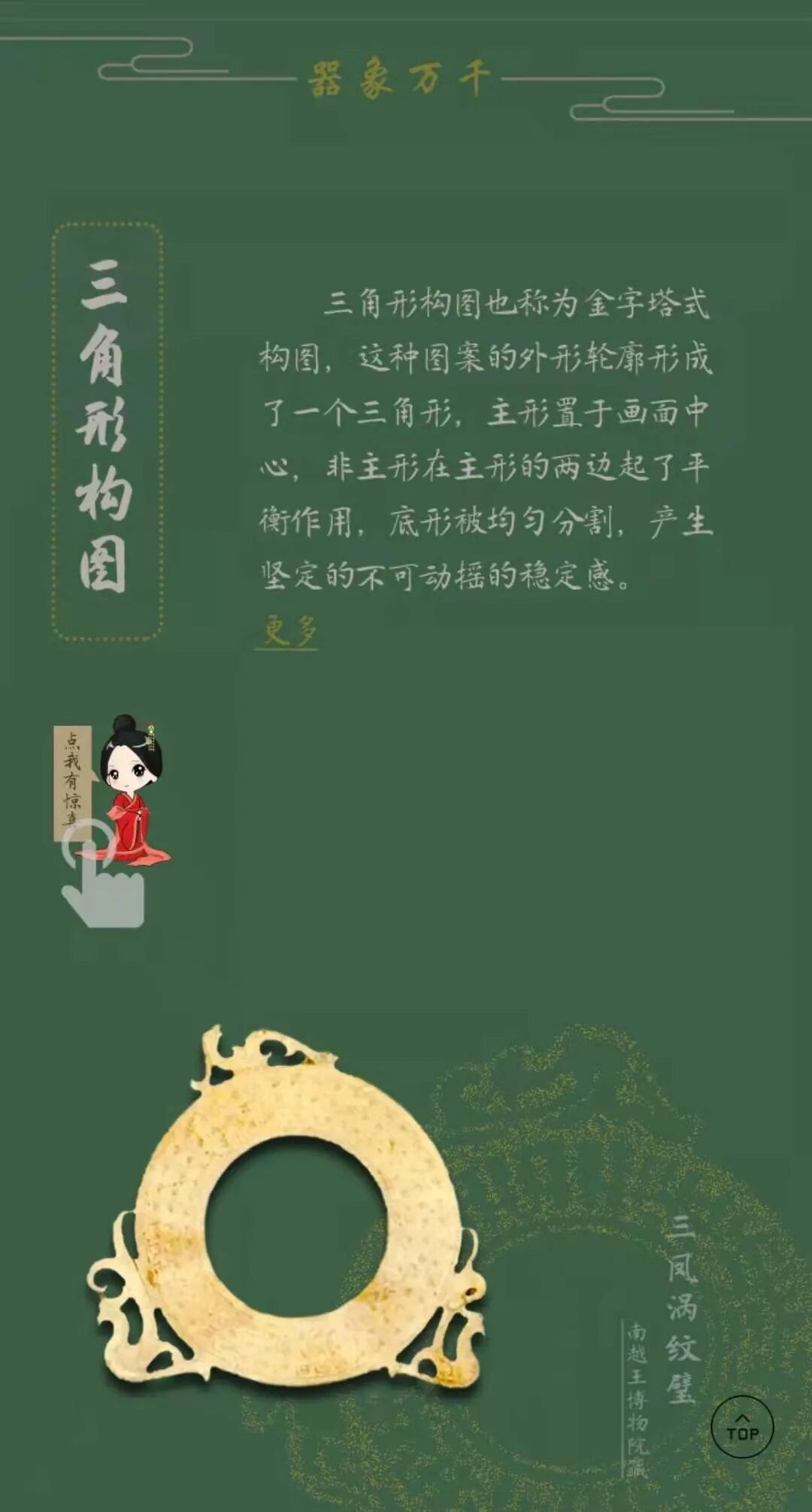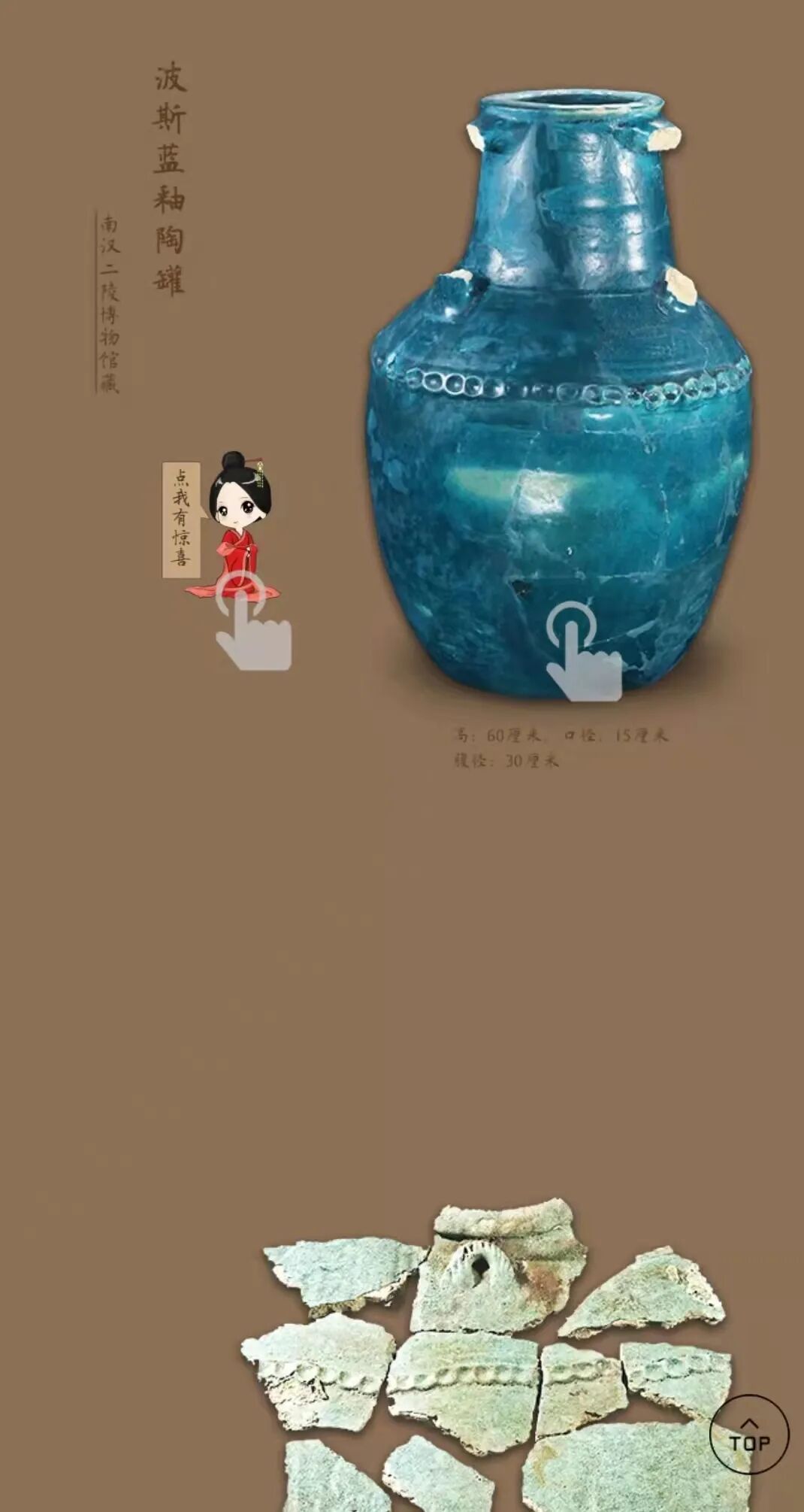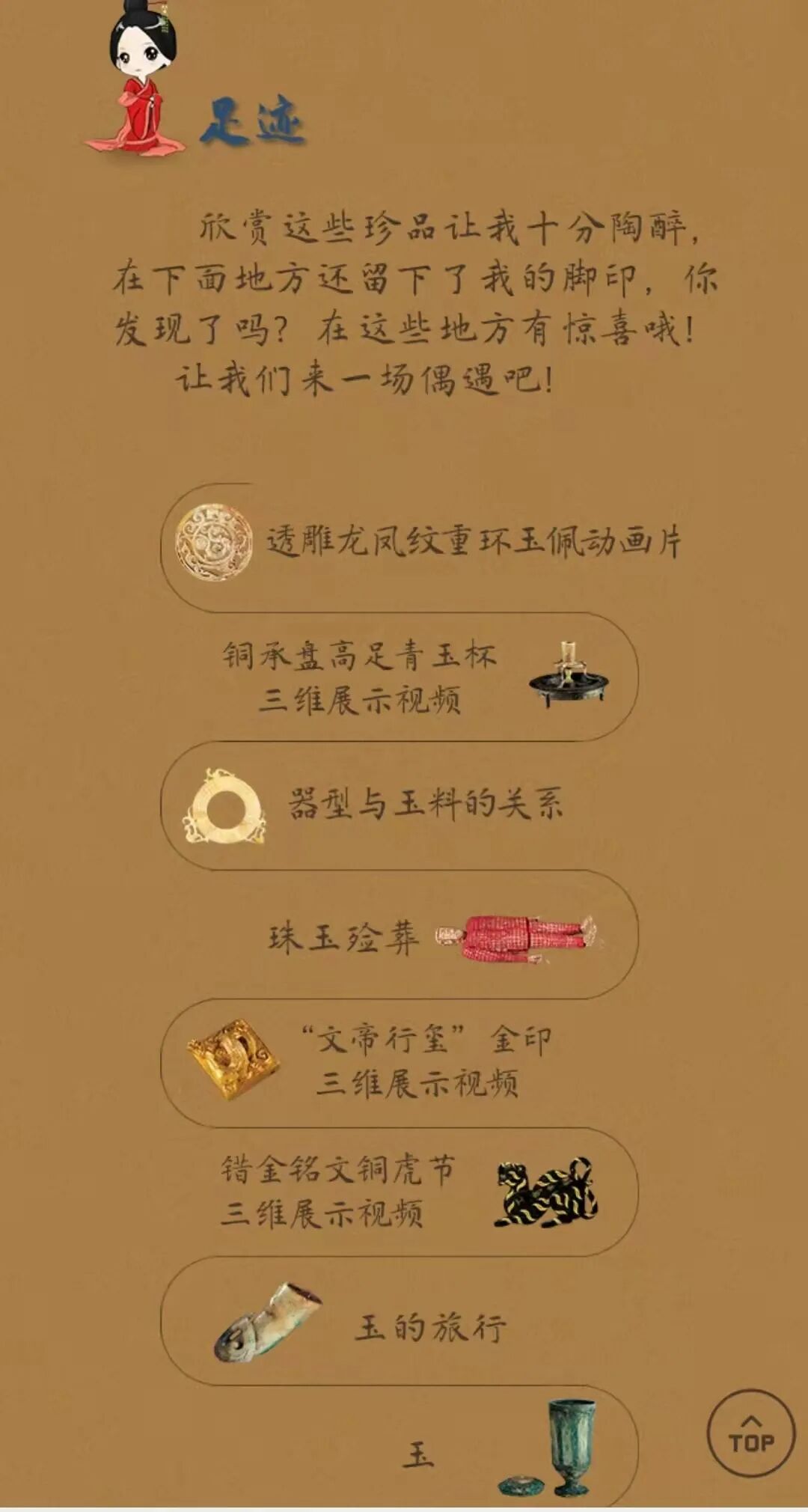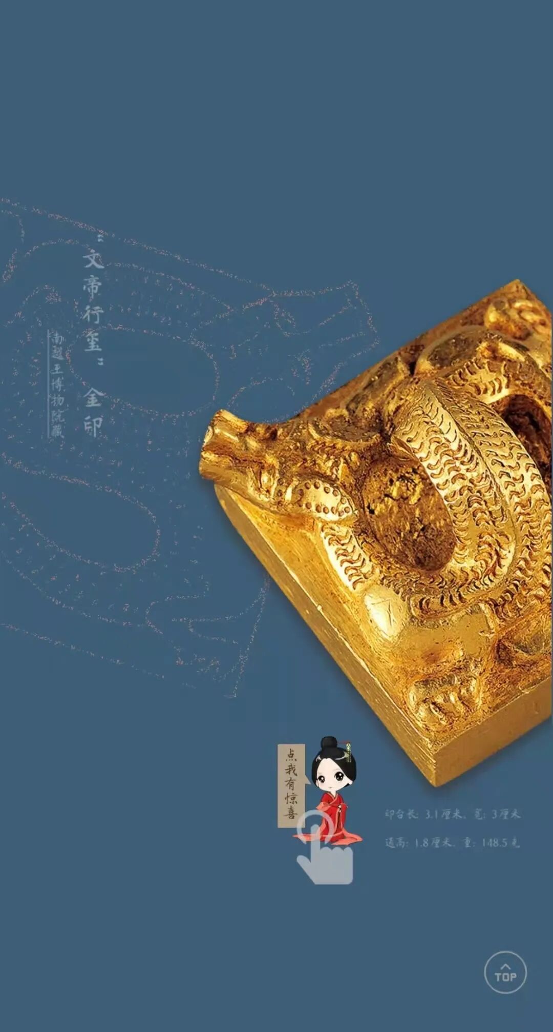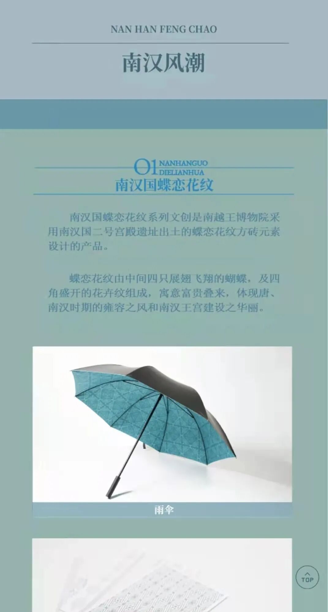 展览跨越千年,汇聚两院南越、南汉时期近300件文物,近100件文创产品,以H5移动客户端为载体,互联网为媒介,通过三维视频等数字化手段打造不落幕展厅,展示岭南地区瑰丽的艺术风貌,展现岭南文化中心地广州在大一统视野下一脉相承的艺术时尚之美,以便观众随时随地漫步云端,品赏文物千秋。展览以酷爱去北京路步行街一带寻觅创造源泉的现代设计师美美的视觉呈现,第一单元南越风华从南越器物造型、纹饰、工艺及背后的文化内涵等角度多维解读南越遗珍,第二单元南汉之绮从南汉瓦当、琉璃等专项类别及文物背后的故事展现南汉文物珍品,第三单元美美相传聚焦南越、南汉文物元素在现代设计中的应用,从而探索文物视觉符号的语义表达与现代艺术设计表现手法的相通之处,总结提炼岭南传统文化的本质内涵,激活传统文化生命力,助力推动中华优秀传统文化创造性转化、创新性发展,以更加深沉的文化自信凝聚起民族复兴的精神伟力。本次展览充分发挥线上展展示手段多样的优势,从与观众息息相关的设计美学的角度展示文物之美,全方位多维度展示历史画卷,希望观众对于文物展览常看常新。 在展陈设计方面,重点突出数字文物的视觉美感,将展览内容隐匿于便捷的交互操作中,结合展示主题,组合展示文物线图、细部图、全局图,让文物的展示特色更加突出。同时通过不同色系的背景布局,营造旖旎的观展氛围。在展品信息的呈现上突破实体展厅文字说明牌的限制,在传递文物基本信息的基础上,综合利用新媒体技术,以丰富的文字、多角度图片、讲解音频、三维展示视频、文物动画片等多种形式对文物进行深入解读,让观众轻松捕捉展品多维信息。在展览互动体验上则设“美美足迹”及“游戏专区”引导观众互动。美美足迹涉及博物院介绍音像视频、三维展示视频、动画片及知识拓展等内容,引导观众交互体验。游戏专区则通过“电子盖章”“瓦当对对碰”“琉璃分一分”“汉服换装”等互动趣味游戏让观众“玩中学”,“学中玩”。