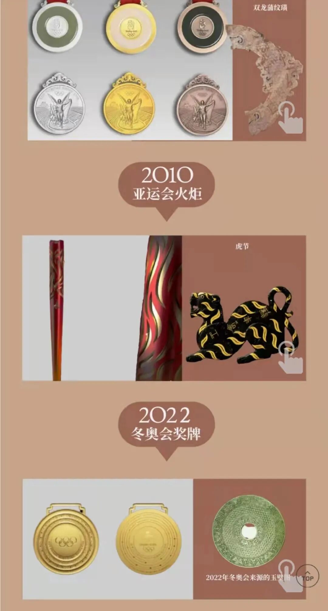 传统文化元素经设计师的巧妙铺排布局,其现代感和传统文化相得益彰,作品含蓄深邃,古朴典雅。2008年北京奥运会奖牌、2022年北京冬奥会奖牌等均是传统文化与现代设计的完美结合。