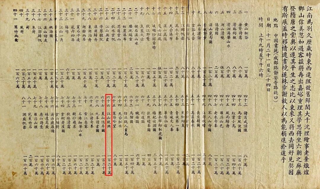 Lot 743 张大千(1899~1983) 江山晚兴拍品估价:4,000,000 - 6,000,000 人民币款识:百尺兼千尺,嵚崎叹岳灵。人疑穿古井,身已驾云軿。斧凿仙游戏,猿猱梦杳冥。长吟追李白,高处摘飞星。此华山千尺?,《水经注》所谓天井游也。自青柯坪至落雁峰只此一路可通。井口有铁盖,铁盖一阖则一丸泥封函谷矣。其上为百尺峡,亦陡绝而不以险畏者,崖不甚修也。过车箱谷二里许为犁沟,再上为猢狲愁,皆须攀鏁而行,崄巇令人战栗。大千居士写并记。著录:《张大千近作展览目次》,第六十六号,上海成都路中国画苑,1946年。1.《大千居士画影集》,民国三十六年(1947)。2.《张大千精品集(上卷)》第135页,人民美术出版社,2011年。3.《中国画题款答问》第93页,天津人民美术出版社,2011年。4.《张大千山水画集》第51页,福建美术出版社,2013年。5.《张大千绘画集》第110页,人民美术出版社,2013年。6.《中国近现代国画名家精品集·张大千山水》第48页,上海书画出版社,2014年。7.《中国历代名家作品精选·张大千》第1页,安徽美术出版社。2014年。8.《张大千精品画集》第78页,上海人民美术出版社,2014年。9.《中国画观察》第80期,第14页,长城出版社,2017年。10.《中国名家画集系列珍藏版·张大千画集》第40页,中国美术出版社,2018年。展览:“张大千近作展览”,上海成都路中国画苑,1946年11月21日—24日。1.顾翼旧藏。顾翼(1917-1993),又名福佑,字复予,号练川,室名卧虎楼,上海嘉定县人。大风堂弟子,擅画山水、花鸟、人物诸画种,生前曾担任上海大风堂艺术研究会主席,上海大风堂书画会会长。2.盛建武题签。盛建武,四川省博物院原院长,四川省博物馆学会理事长。1934年的仲秋,张大千与其二哥张善孖乘火车从四川赶往陕西,奔赴西岳华山游历,此行乃是张大千初访华岳之旅。大千在当地盘桓数日,遍游华山五峰,寻幽搜奇,写生作画,吟啸赋诗。在日后的时光里,大千又多次登临华山,留下了许多描绘华山奇景的佳作。这幅《江山晚兴》为大风堂弟子顾翼的旧藏、四川省博物院原院长盛建武题签。描绘“自古华山一条路”的险境,即青柯坪往主峰攀登的险道,其下为幽深的峡谷,上为西峰绝壁,攀登这千米危崖,须历经五大险关,途中几乎无路不险。款识中这首五言绝句,“百尺兼千尺,嵚崎叹岳灵。人疑穿古井,身已驾云軿。斧凿仙游戏,猿猱梦杳冥。长吟追李白,高处摘飞星。”加之其他题字,近乎二百字,一气呵成,既记述了千尺、百尺峡、猢狲愁等华山绝美风景,也展示了大千书法造诣之高。1946年至1947年间,张大千于上海有过两次“张大千近作展”,而且主题、面貌均有新意,这幅《江山晚兴》就在其中展出,列于展览目录第66号。此幅以饱满的构图表现出华山的险峻,画面层峦叠嶂,层次丰富淡远,皴法细致严谨,设色明净浑融,岩石瘦硬崚嶒,境界阔远灵逸。从中可见,大千已将传统山水的笔墨与自然景色结合起来,渐入佳境。此作未署年款,大千在二十世纪四十年代曾作过同类题材、构图类似的作品,其亦应是这一时期的极具代表性的杰作。本拍品出版物