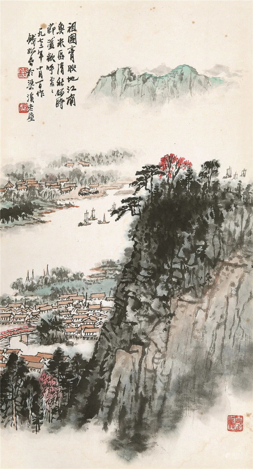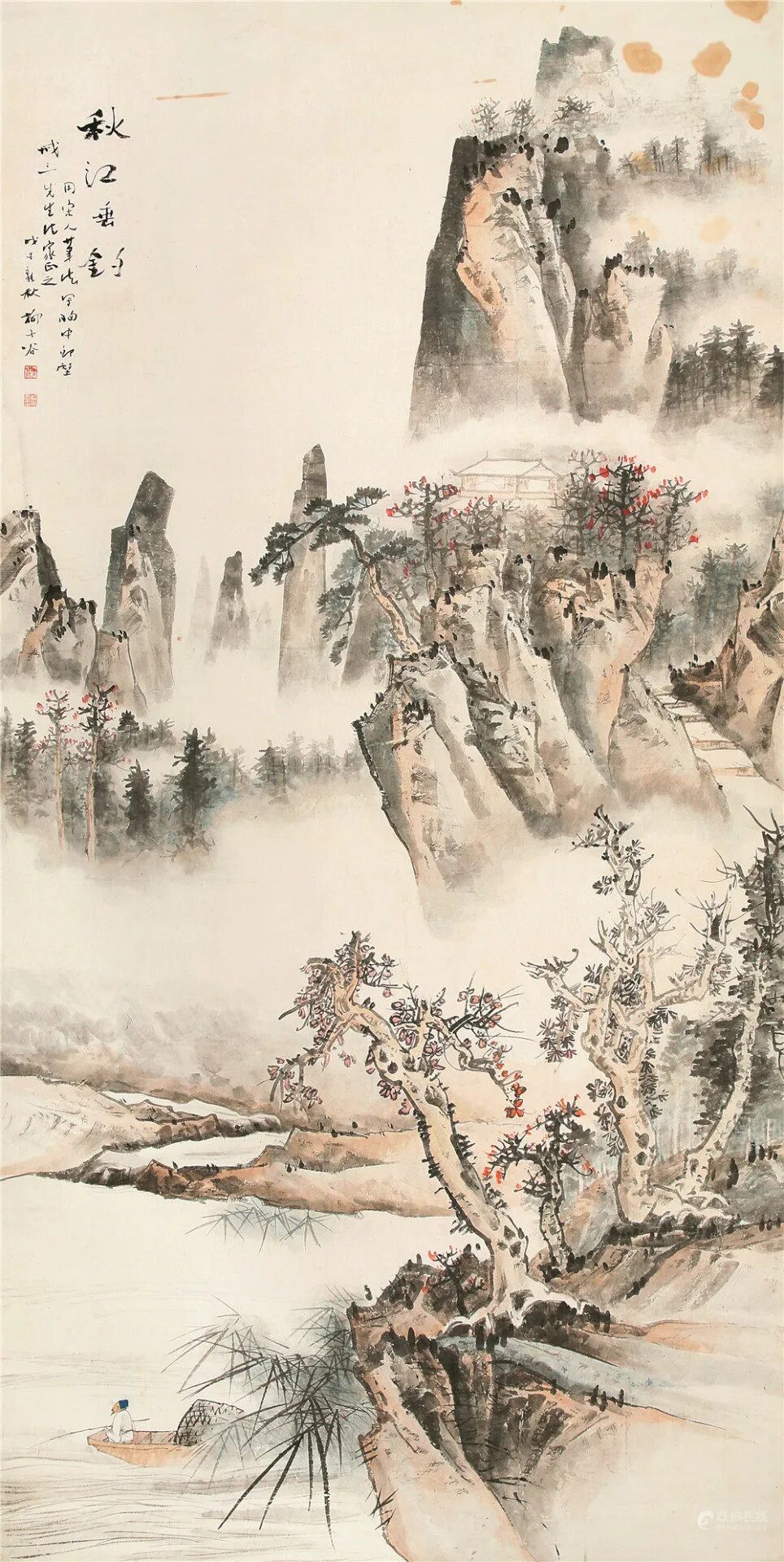 Lot 771 柳子谷(1901~1986) 秋江垂钓拍品估价:700,000 - 1,000,000 人民币款识:秋江垂钓。用宋人笔法写胸中丘壑,戒三先生法家正之,戊子新秋,柳子谷。1.《中国山水画·现代卷》第1536页,广西美术出版社,2000年。2.《中国书画报合订本》第四十一册(下),中国书画报社,2006年。Lot 539 钱松嵒(1899~1985) 江南鱼米乡拍品估价:350,000 - 550,000 人民币款识:祖国膏腴地,江南鱼米区。清秋好时节,欢呼处处溢。一九七三年十月一日作,钱松嵒于梁溪老屋。