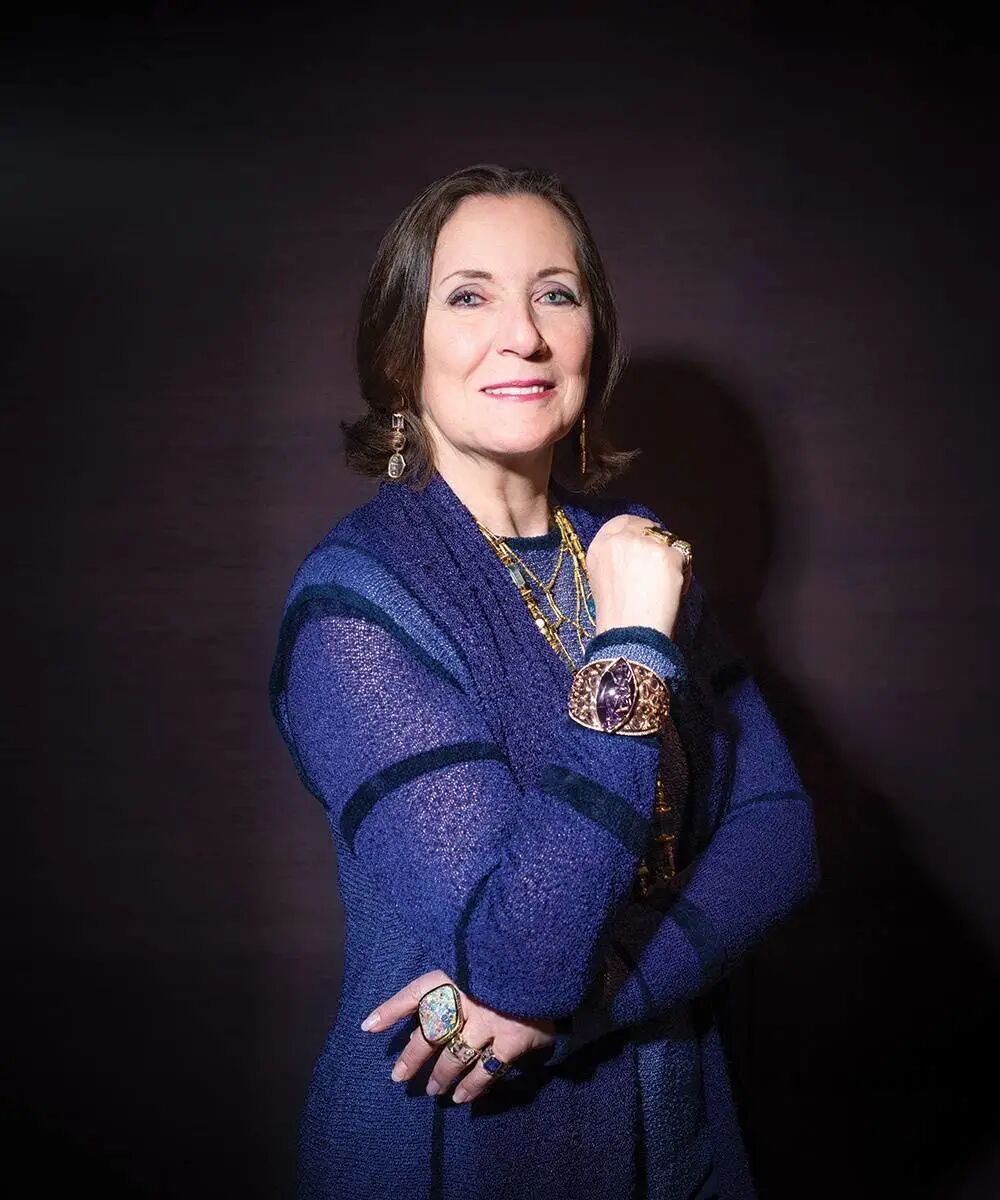 所以说赏石在兹夫的收藏体系内是很自然的一环,八千藏品之一角。安本人对于石头,尤其是矿石,一向是很迷恋的。母亲是女伶,少不了珠宝傍身,自幼就摆弄妈妈的大粒彩宝。与小兹夫结婚后,对方支持下,收集裸石越来越多,索性成立工作室,自己设计。▲安最喜欢的宝石是欧泊,大颗粒,大开大阖。欧泊拉丁文叫Opalus,意思是“集宝石之美于一身”,光华灿烂。上图为安佩戴自己设计的珠宝Jennifer Kamm▲她的珠宝品牌叫做TAMSEN Z,因为兹夫这姓氏太高调,索性弃之,以闺名Tamsen来命名。上图为2010年前后上东区店面开幕式Patrick McMullan