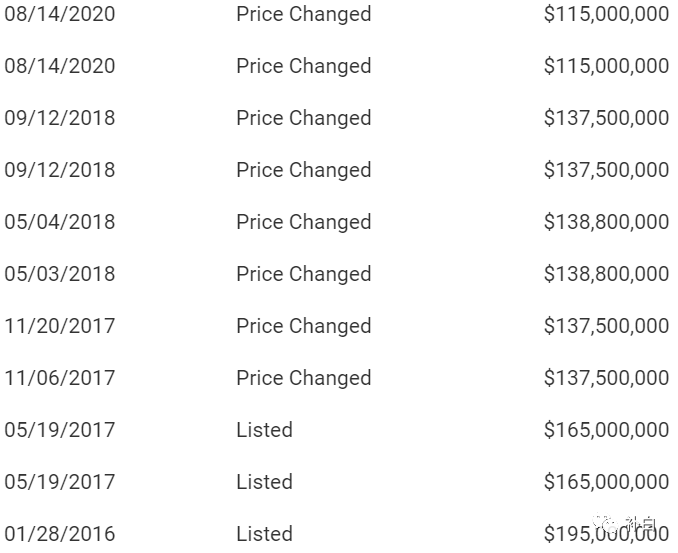 2016年初此宅挂牌出售,佳士得地产代理,要价2亿美金,很长一段时间都是美国境内最贵的豪宅——这还不算上律师费、房产税与HOA哩!房屋上市,陈设当然要清空,再之后就是“十面灵璧山居”专场的故事了,此处不细说。▲或许是2亿美金的价格实在是令人乍舌,或许是高端房产不再景气,“双子星”从挂牌至今已经4年多了,一降再降,几乎对折,至今还没有售出。realtor.com▲粗略估量一下,尽管降价到1.15亿美金,各项杂费平摊下来,每月还要$52万,可想而知到手价该多么惊人了。realtor.com