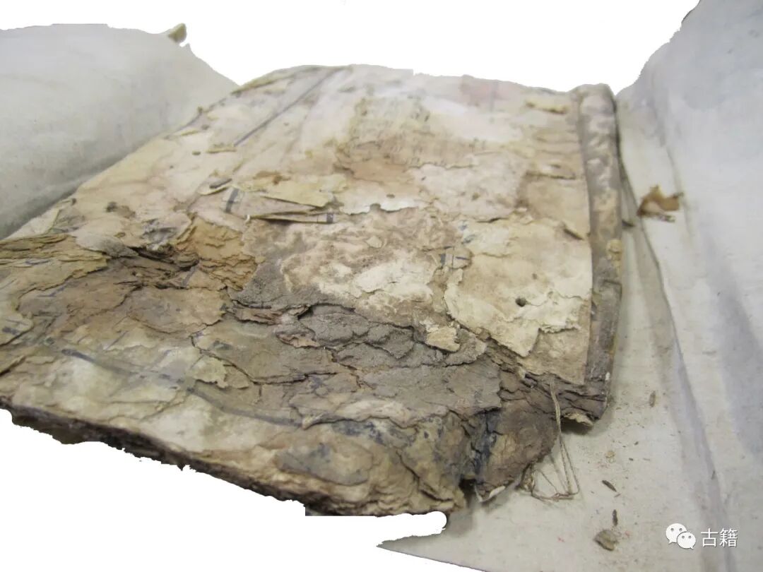 第1册:破损非常严重。全册粘连、糟朽、霉烂、残缺并呈书砖状态。