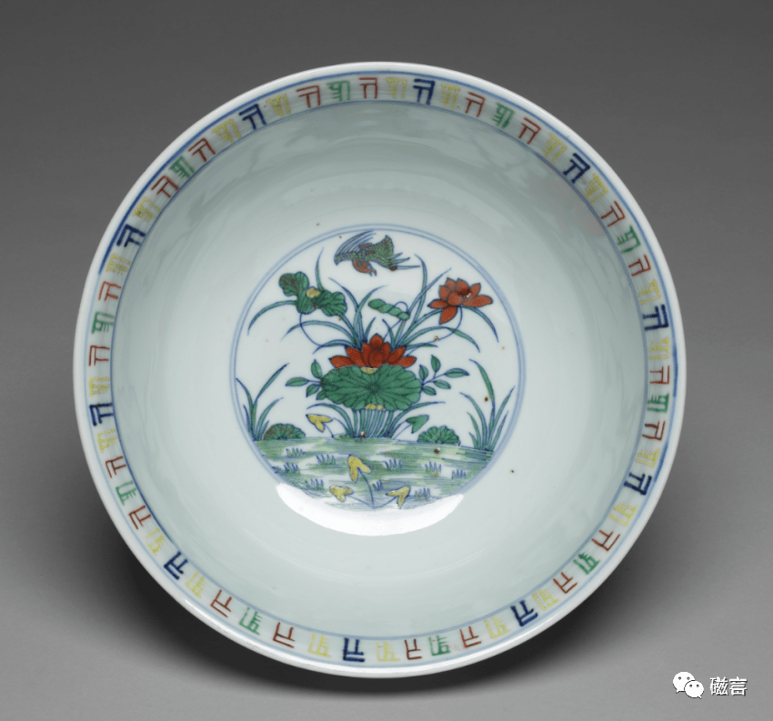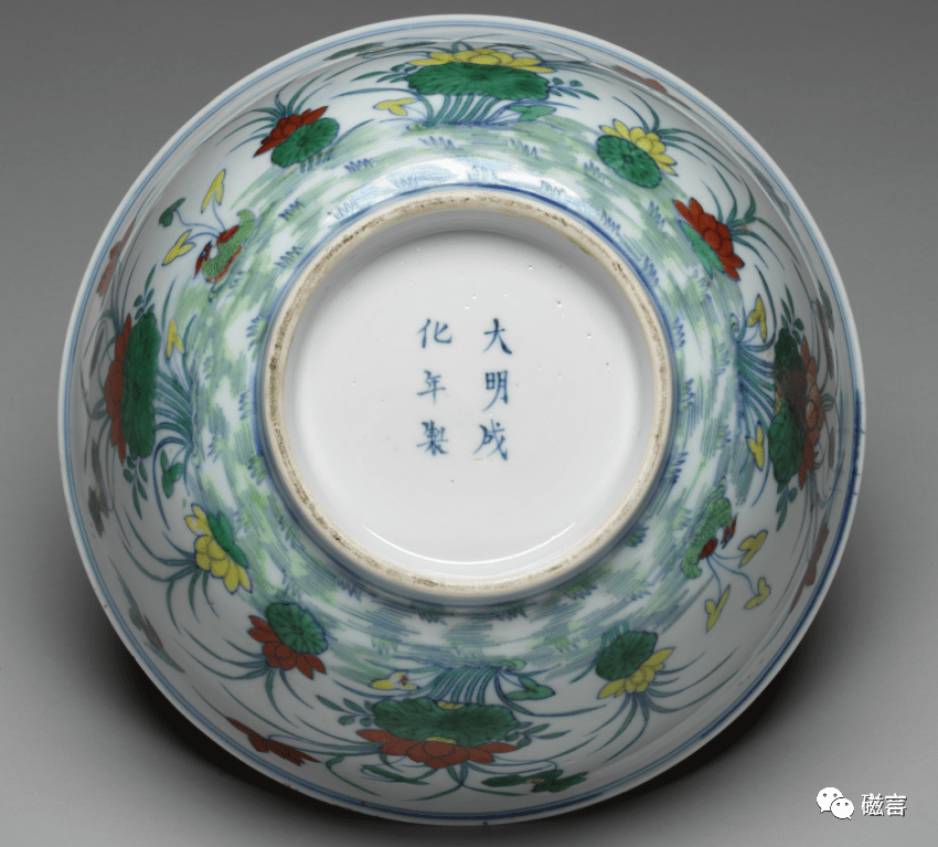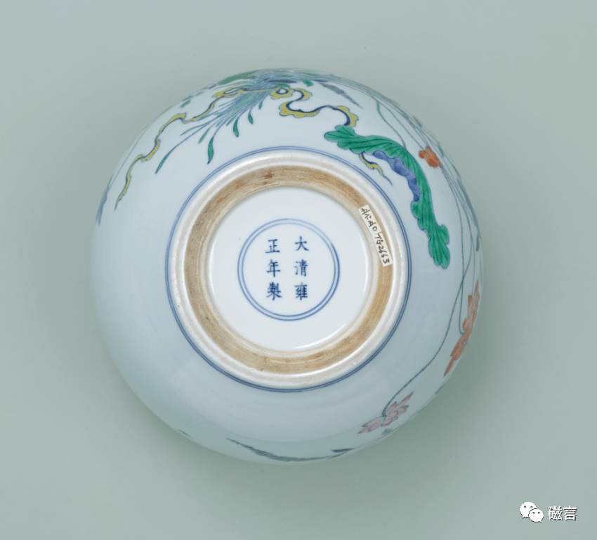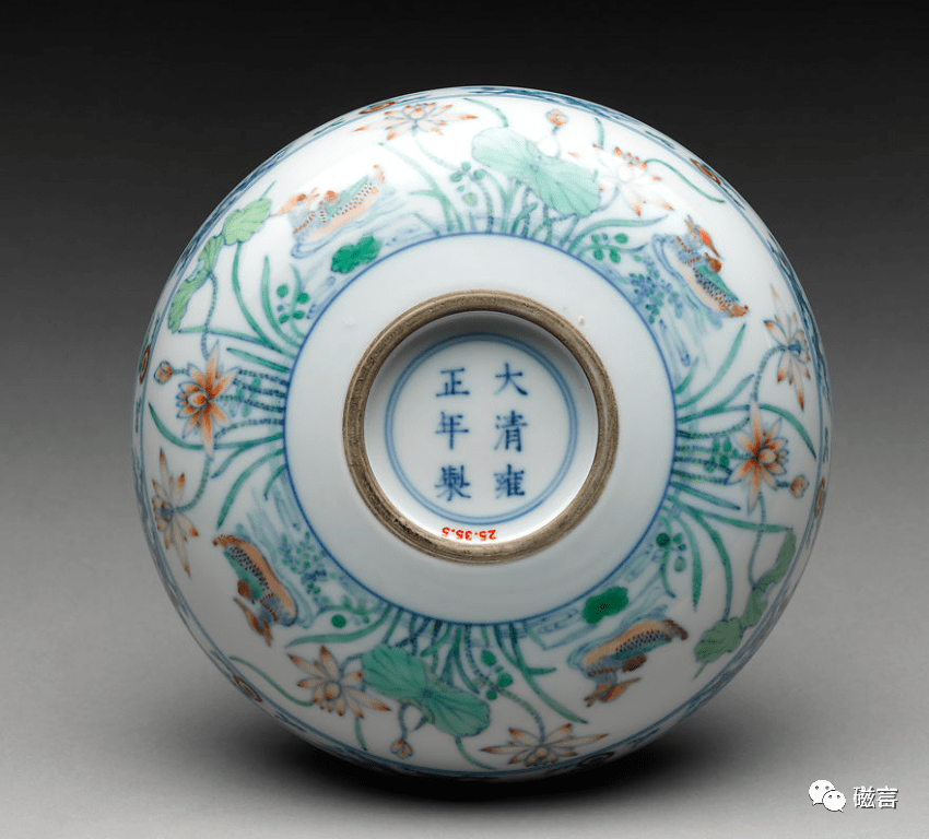 清雍正 斗彩荷莲纹盘(底部) 美国大都会博物馆藏