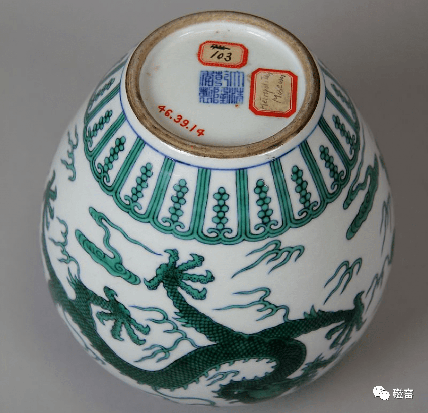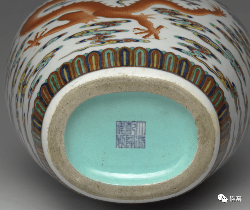 清乾隆 斗彩绿彩云龙纹罐(底部) 美国大都会博物馆藏